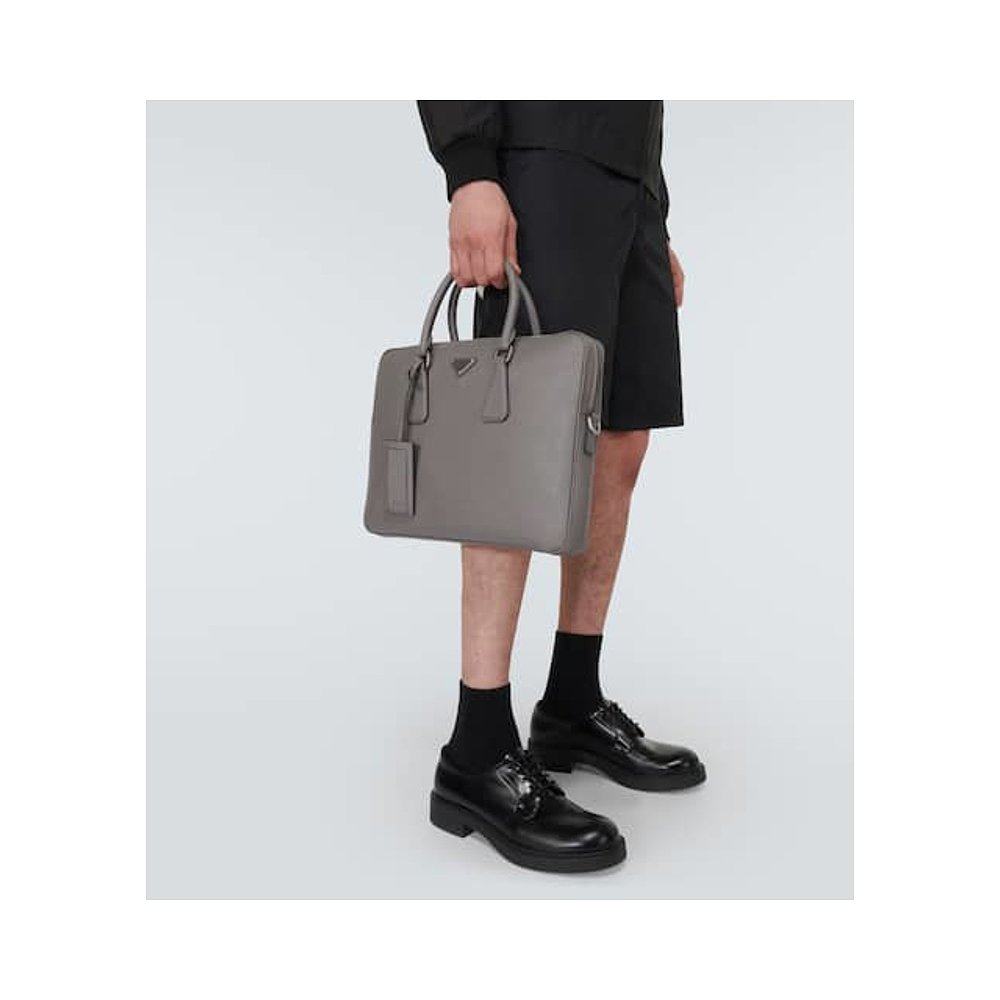 1h可退 香港直邮Prada 普拉达 男士 小牛皮公文包 grey灰色 舒适