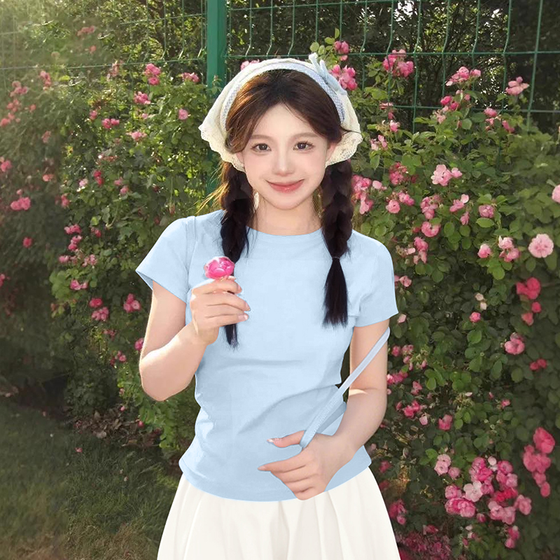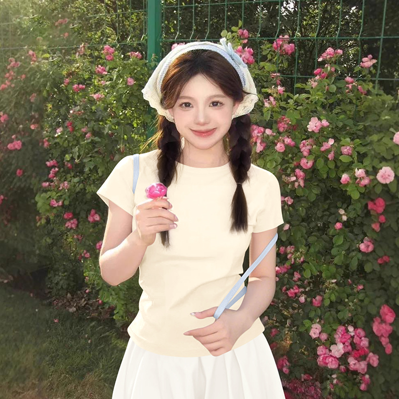 KHV真维斯正肩t恤女短袖夏2025新款小个子设计感收腰短款半袖上衣