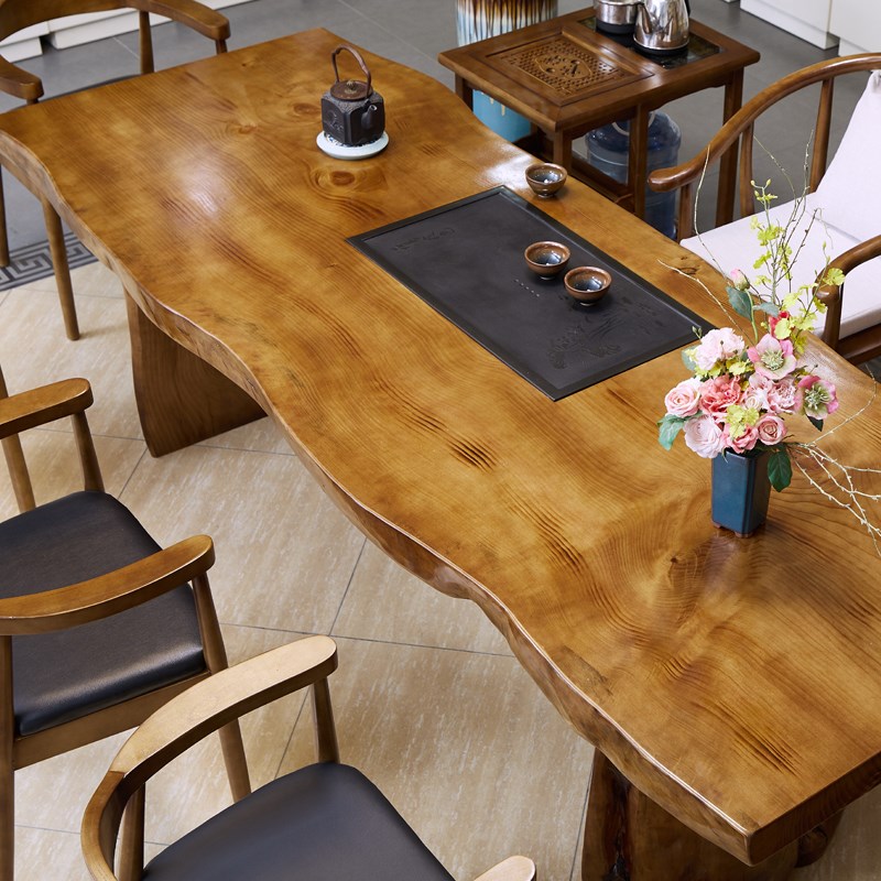 实木茶几茶桌椅组合现代简约茶台茶具套装一体整板原木办公大板桌