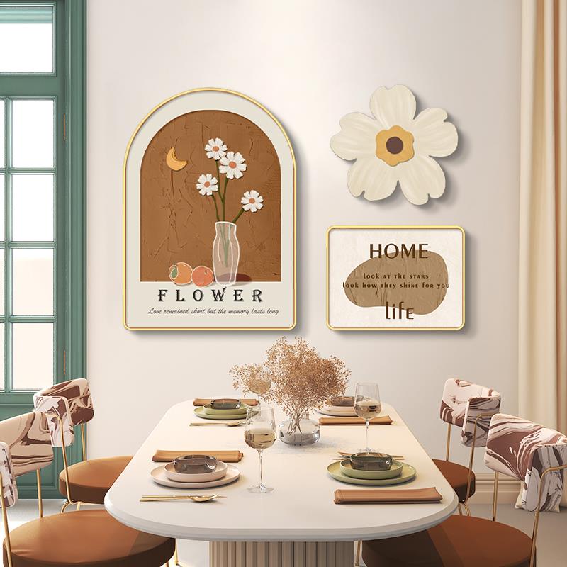 北欧餐厅装饰画现代简约饭厅背景墙壁画文艺复古创意餐桌组合挂画