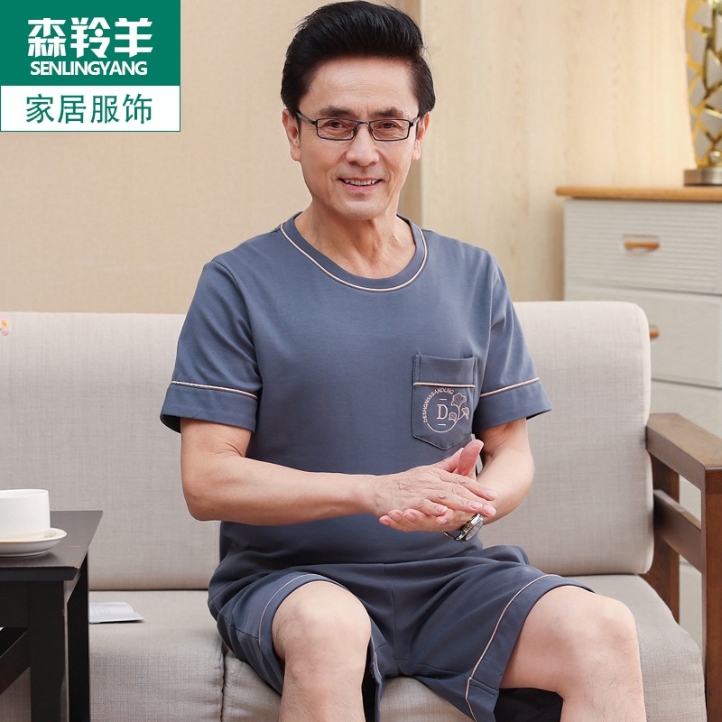 男士睡衣男夏季薄款纯棉短袖短裤2022年新款中年人爸爸家居服套装