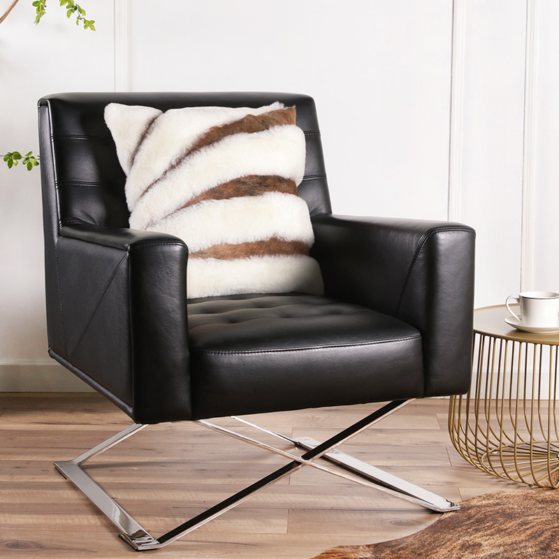 羊毛牛皮拼接皮质真皮靠垫客厅沙发原创酒店样板间高级感轻奢抱枕
