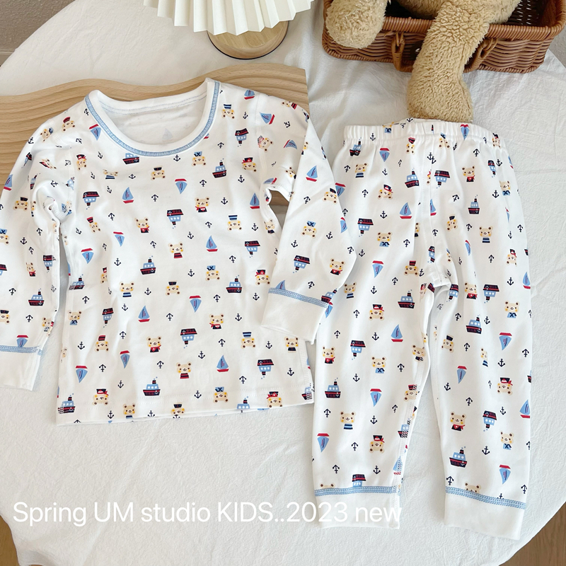 出口日本松优西松儿童睡衣23秋冬纯棉内衣男女童秋衣长袖长裤套装