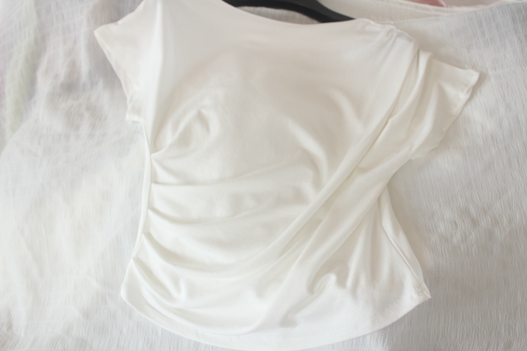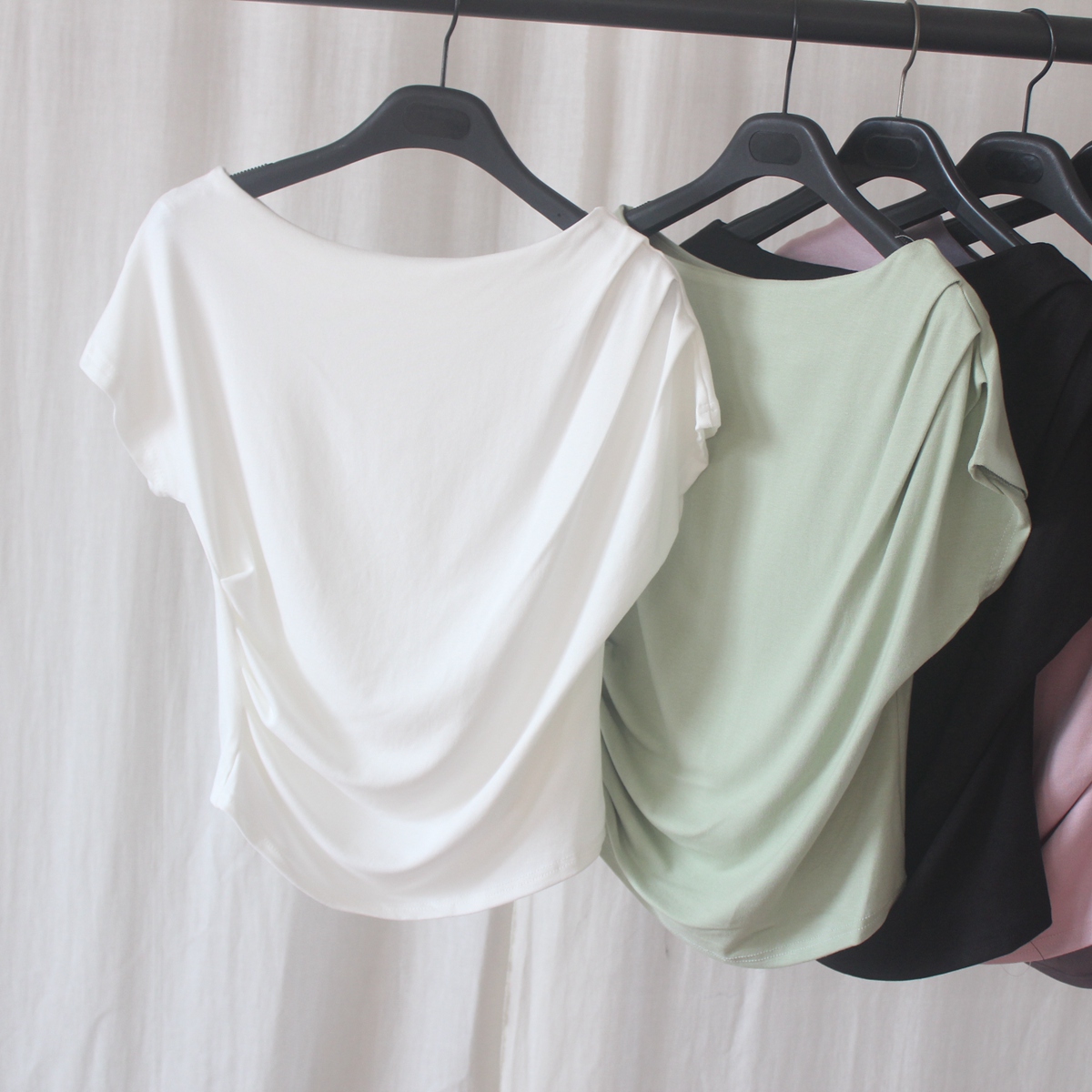 高级感气质优雅一字肩短袖T恤 夏季女士莫代尔褶皱遮肚腩显瘦上衣