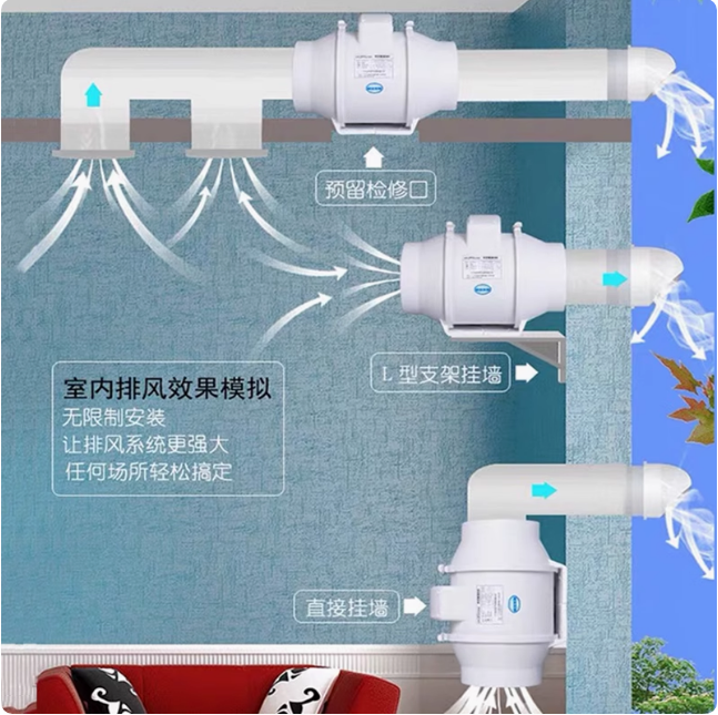 米风斜流管道抽风机强力型静音换气扇排风扇厨房油烟卫生间排气扇