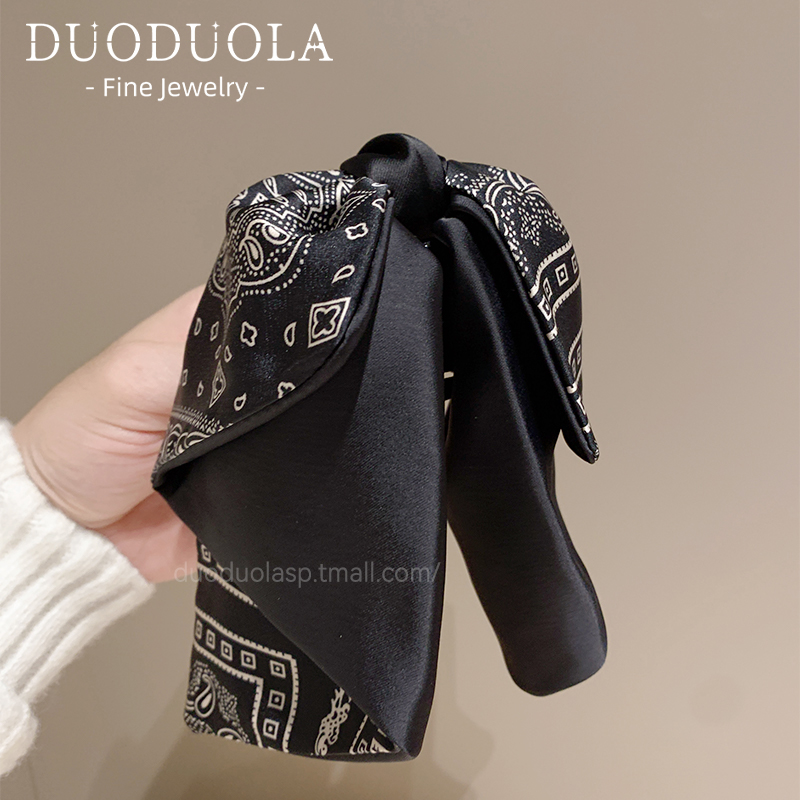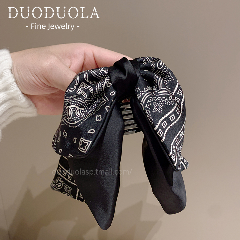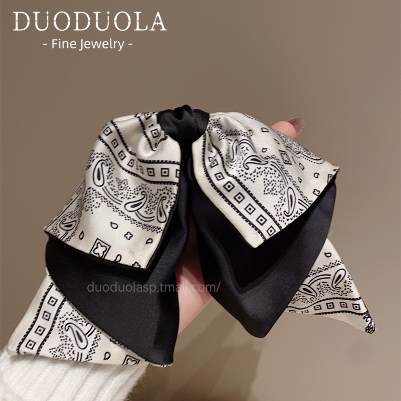 法式高级感缎面蝴蝶结抓夹高级感印花飘带扎马尾发夹气质简约发饰