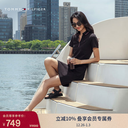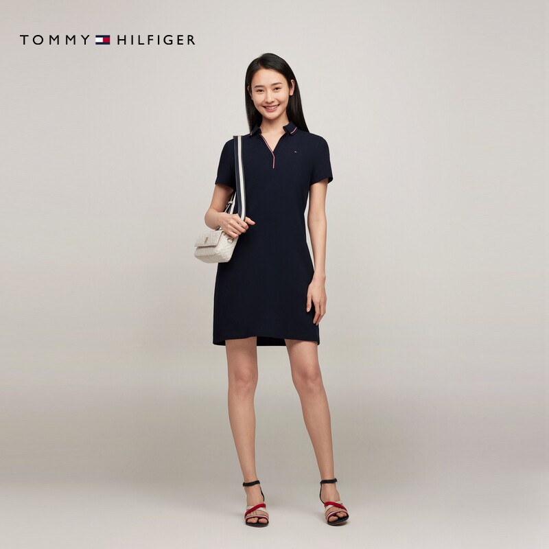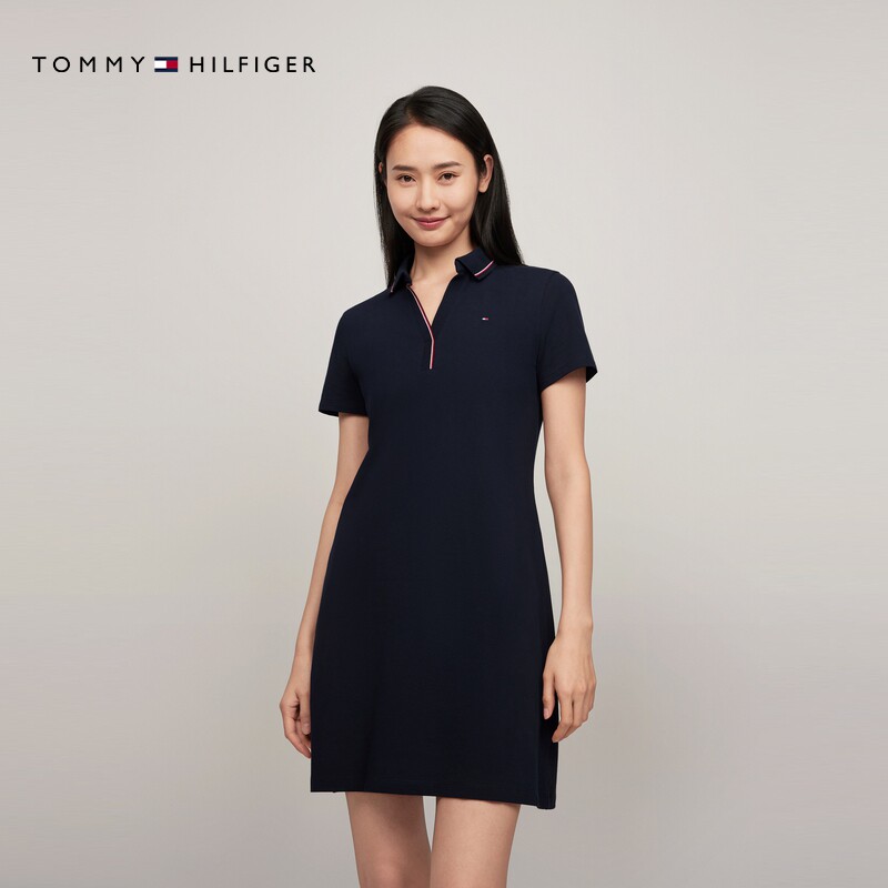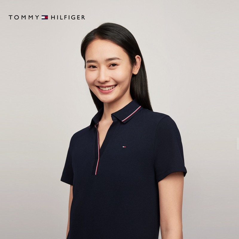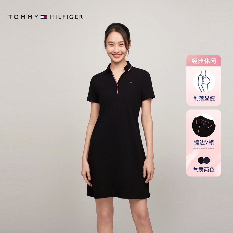 Tommy女装镶边V字POLO领连衣裙