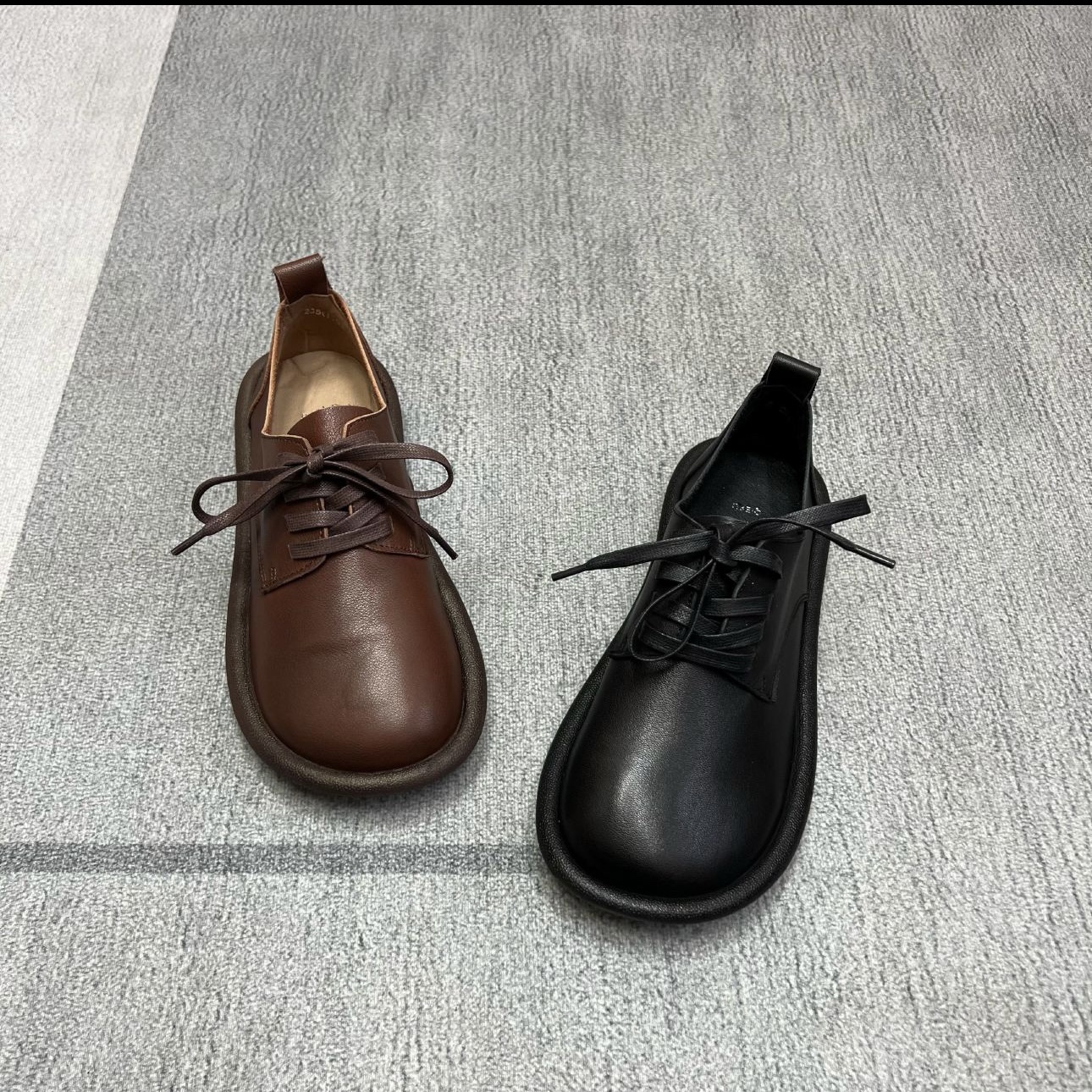 2023春秋新款复古日系大头鞋英伦风系带皮鞋百搭舒适真皮软底单鞋