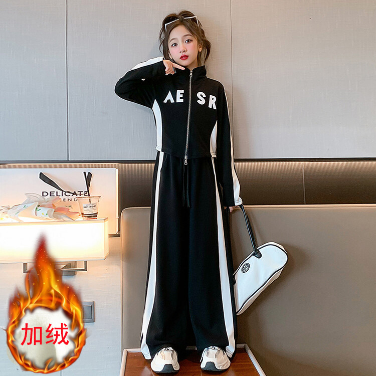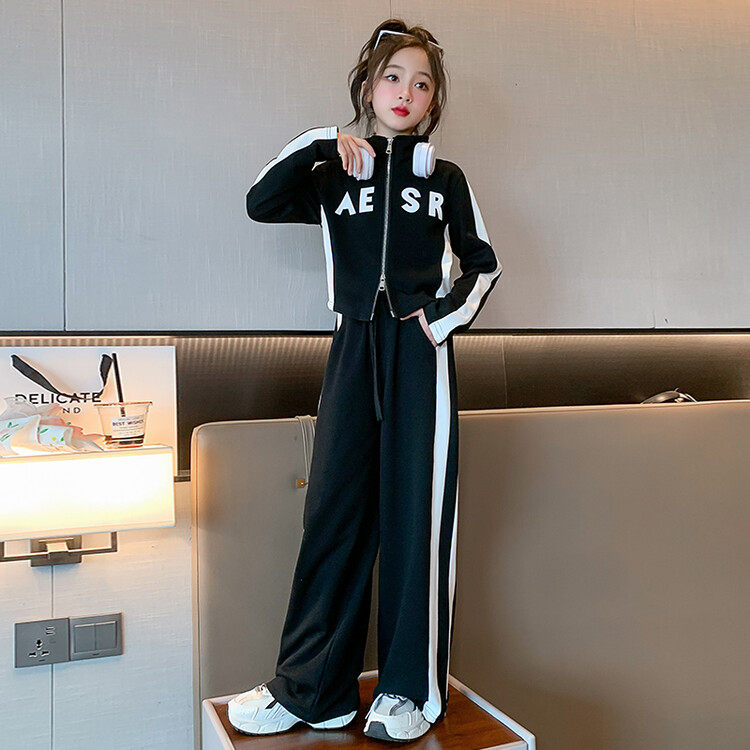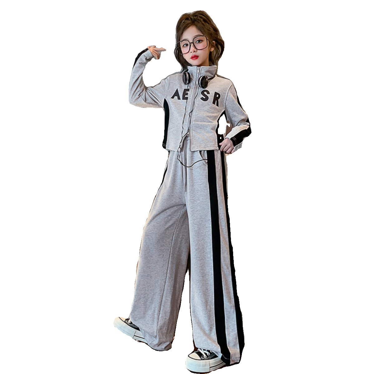 女童套装卫衣短款外套春秋款两件套2025新款韩版阔腿裤大童洋气潮