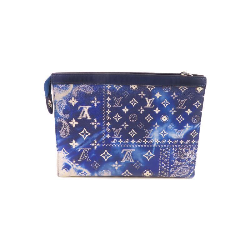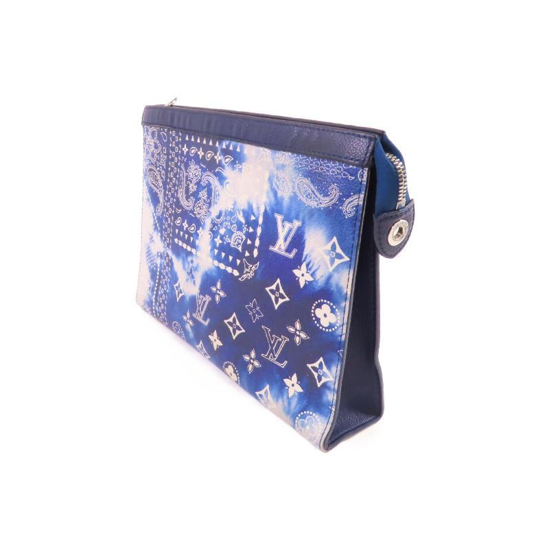 中古LV路易威登男包B级9新second bag手提包牛皮手拿包蓝色RECLO