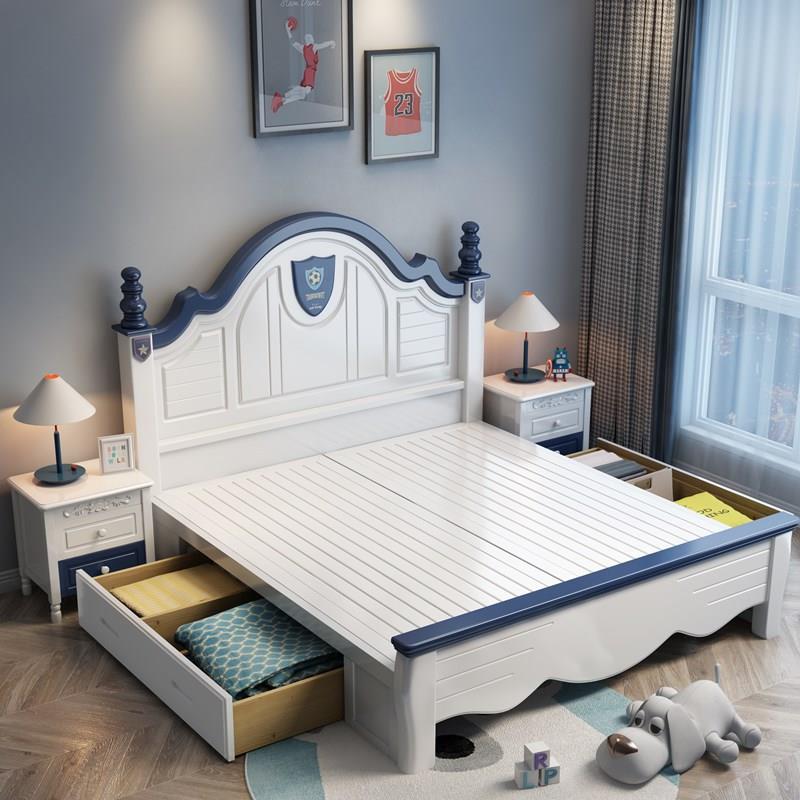 儿童实木床1.35单人床1.5米现代简约女孩公主床1.2储物童床纯实木