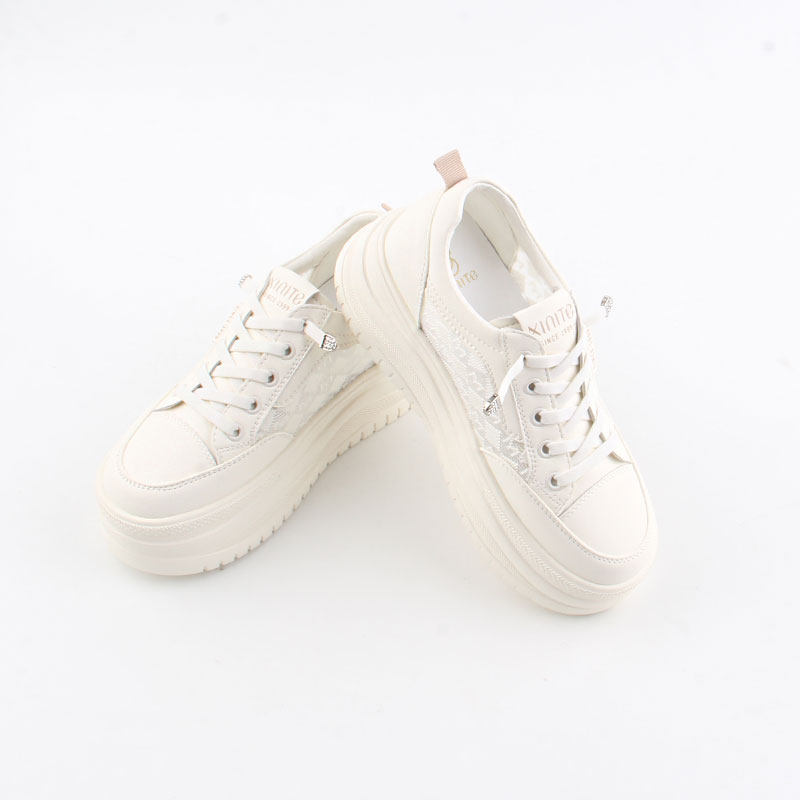 专柜正品真皮蕾丝网透气小白鞋