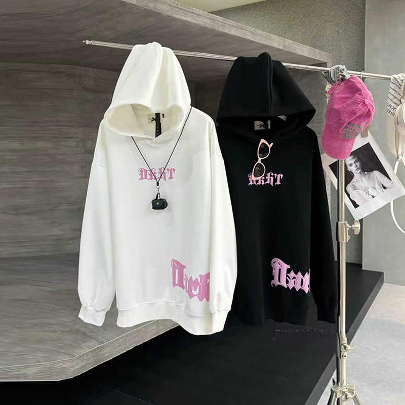 胖妹妹连帽长袖字母卫衣大码女装韩版宽松遮肚子减龄休闲上衣