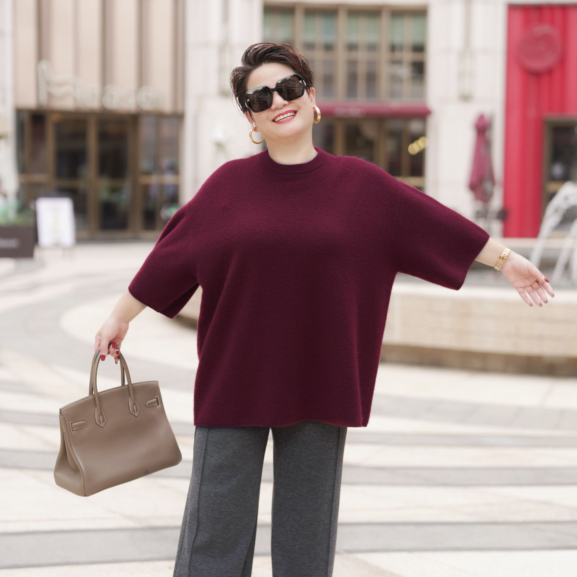 向红同学大富婆2025年秋冬新款圆领保暖时尚山羊绒针织毛衫SY079