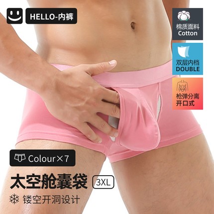 分离式内裤男纯棉囊袋太空舱男士内裤平角裤性感枪弹式装蛋裤头