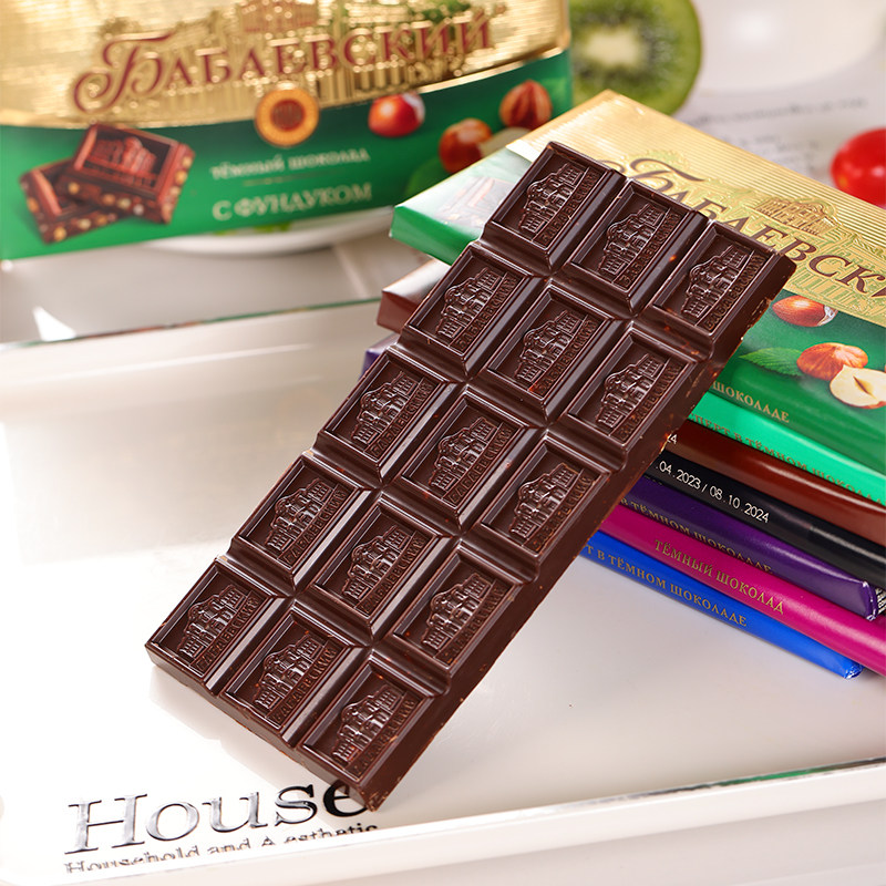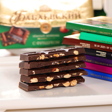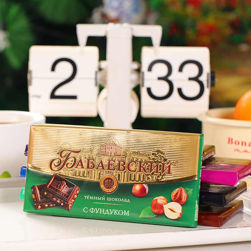 巴巴耶夫俄罗斯进口芭味富扁桃仁榛仁夹心黑巧克力纯可可脂零食品
