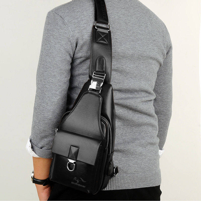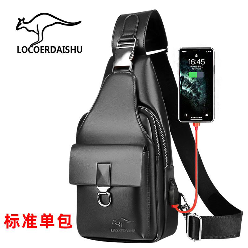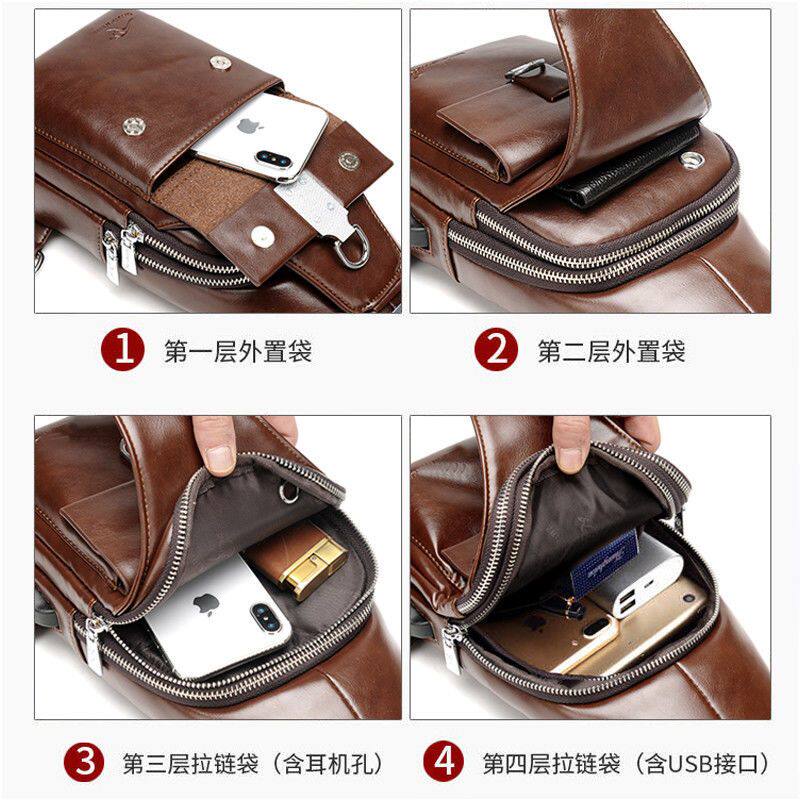 男士胸包单肩包斜挎包真皮男包包休闲牛皮包潮流运动斜包小背包跨