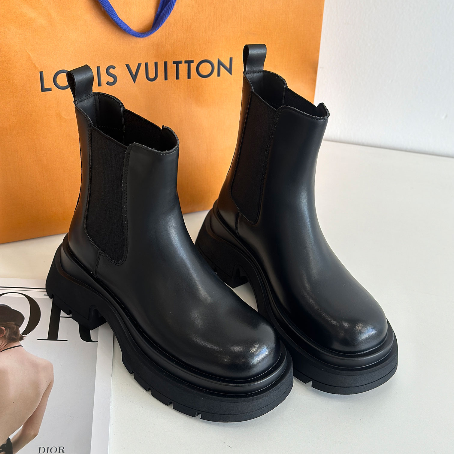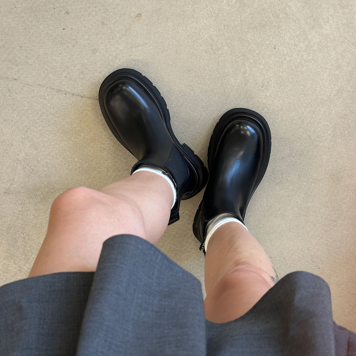 小个子增高厚底靴子女2025新款秋冬加绒爆款真皮短靴配裙子烟筒靴