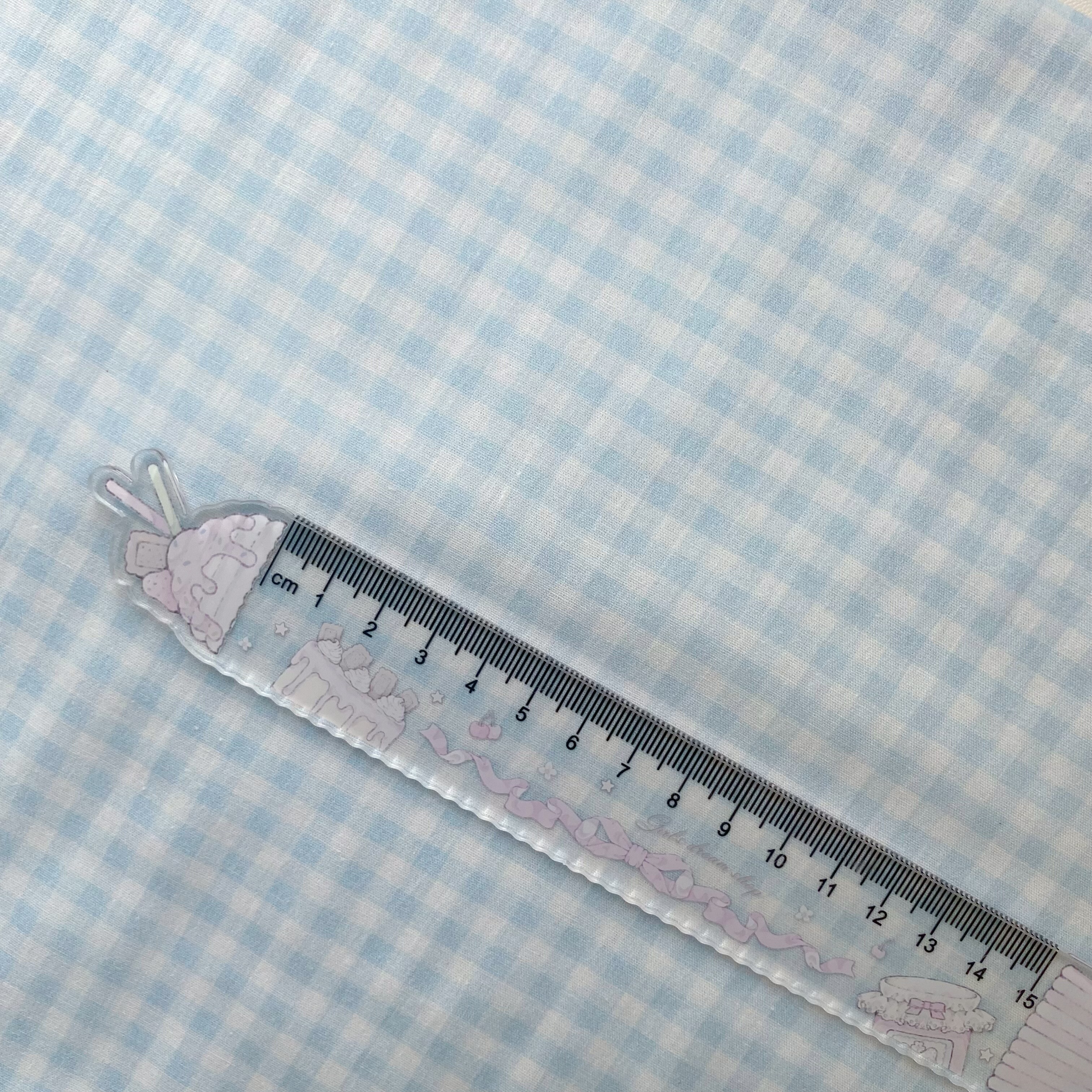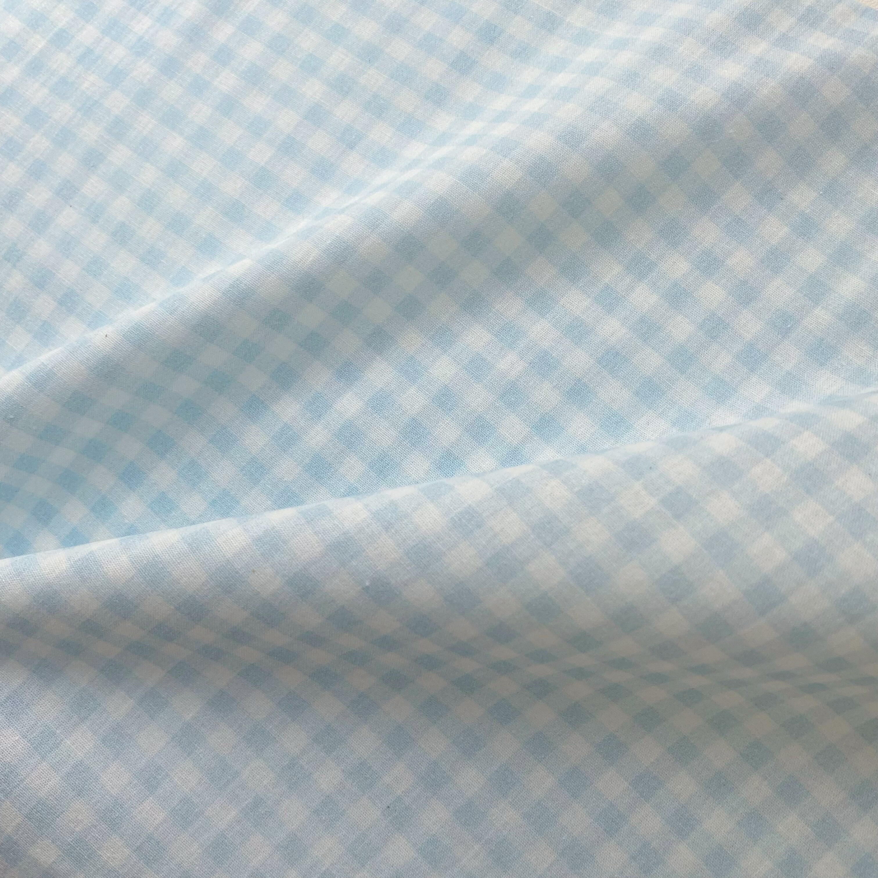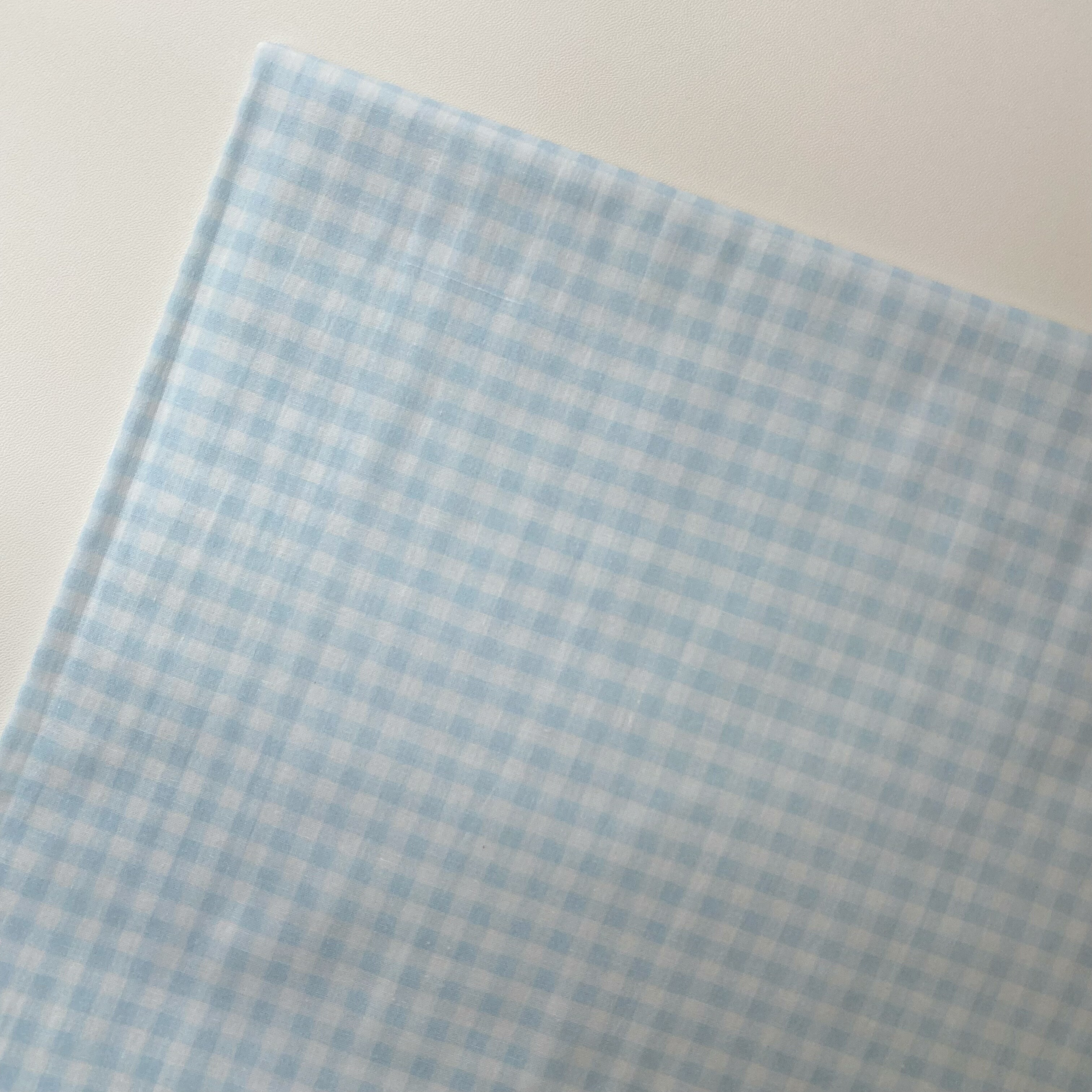 40支纯棉薄棉布数码印花浅蓝色格子面料衬衣家居服娃衣手作面料