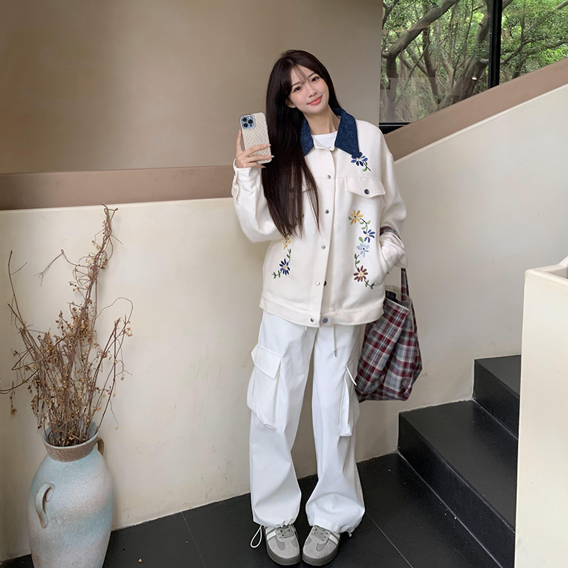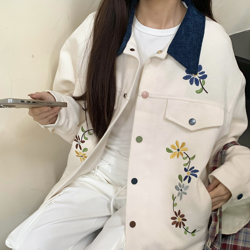 橘子树在哪儿复古国潮花卉刺绣灯芯绒外套女秋宽松小众设计感夹克