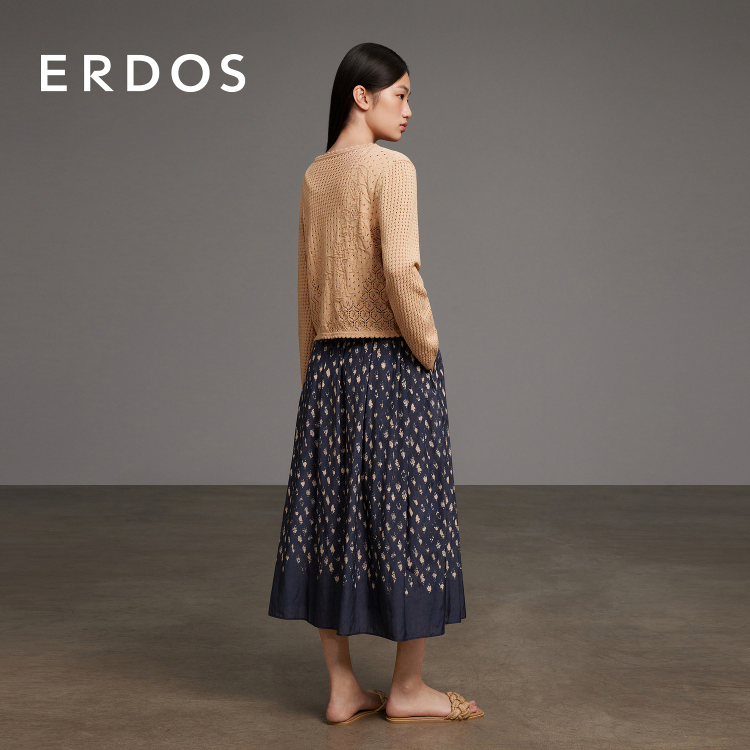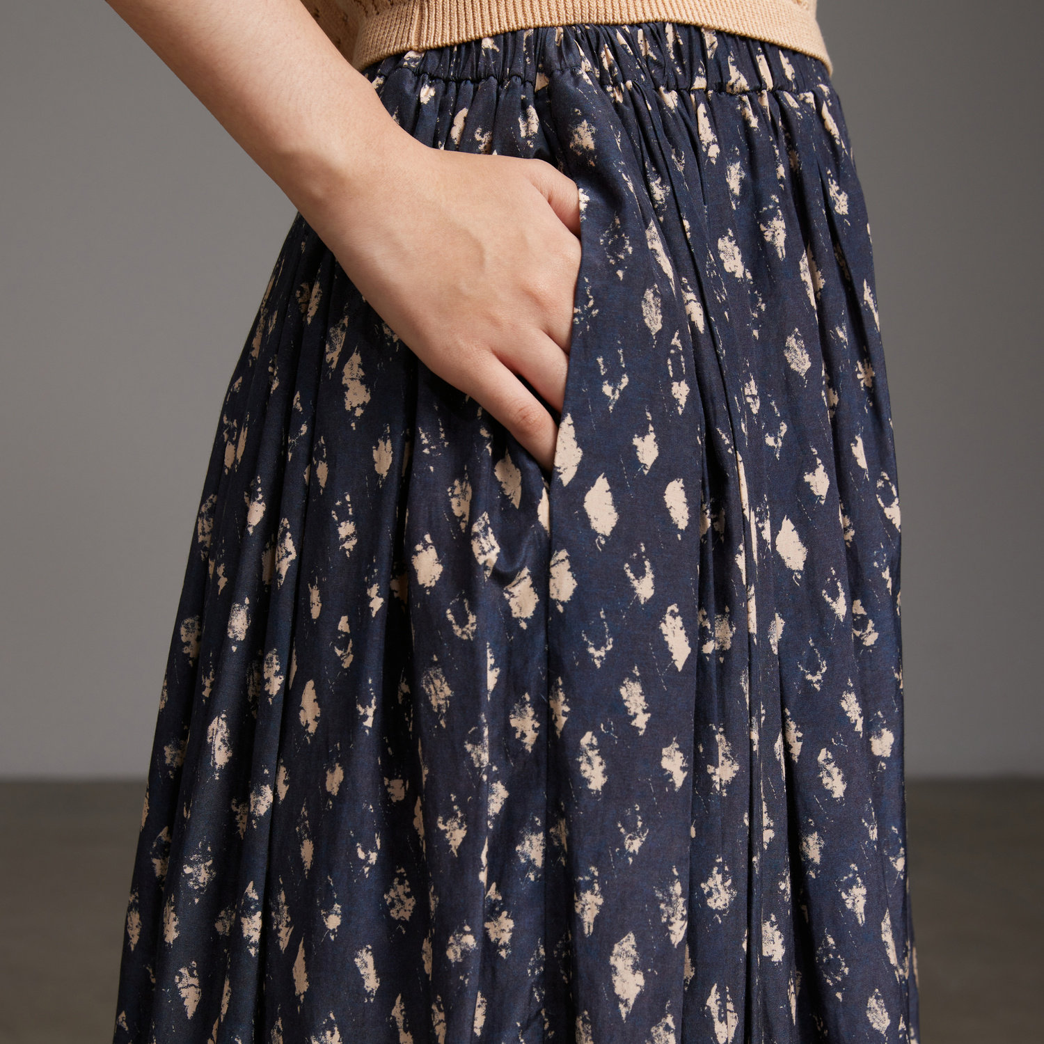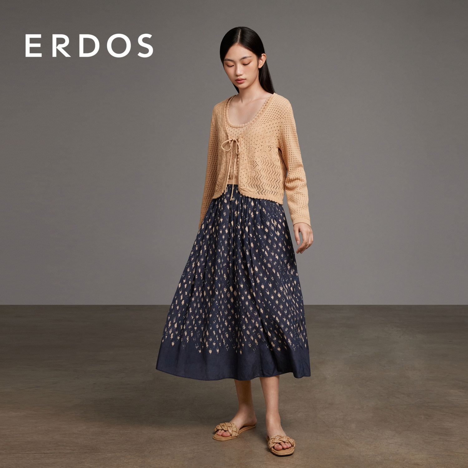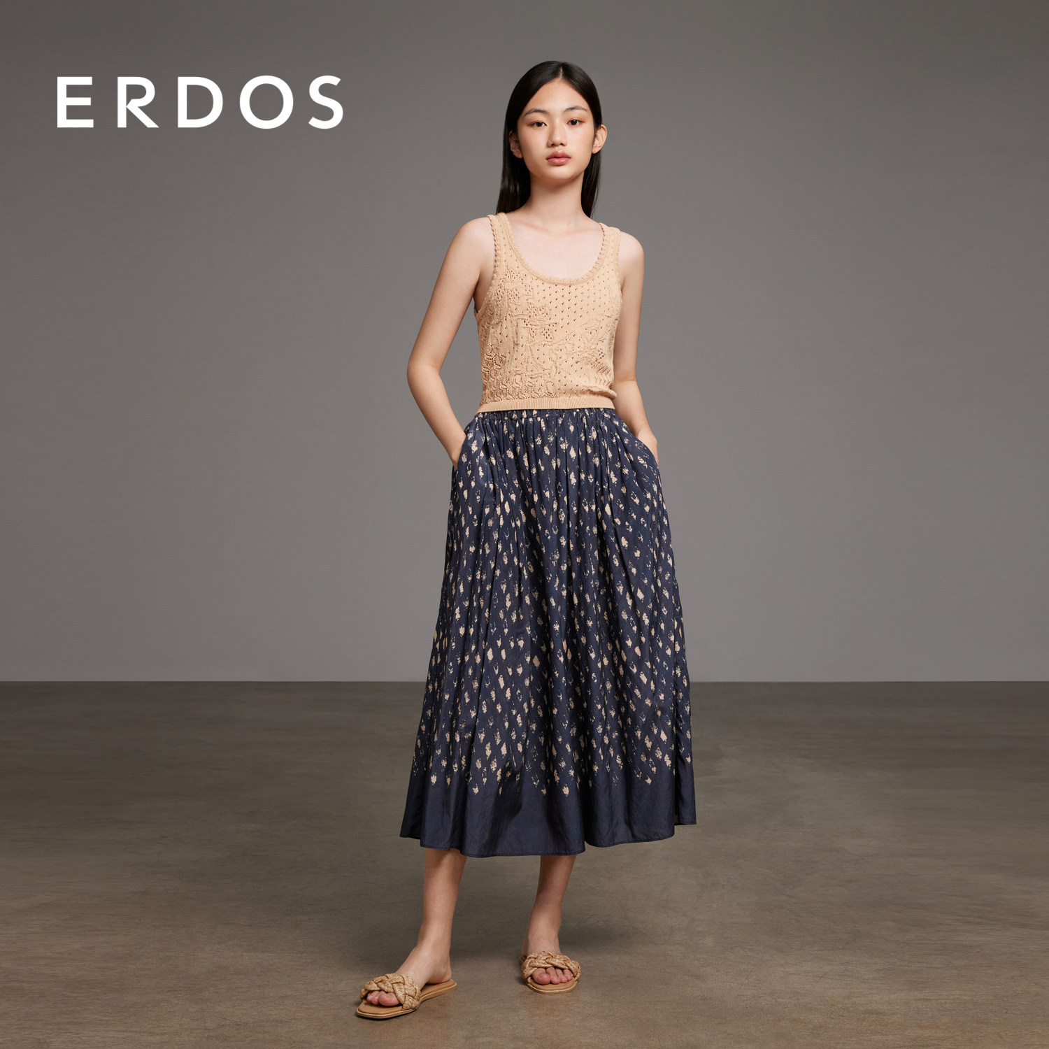 【丝棉绸】ERDOS 几何印花松紧腰半身裙夏女A字大摆伞裙