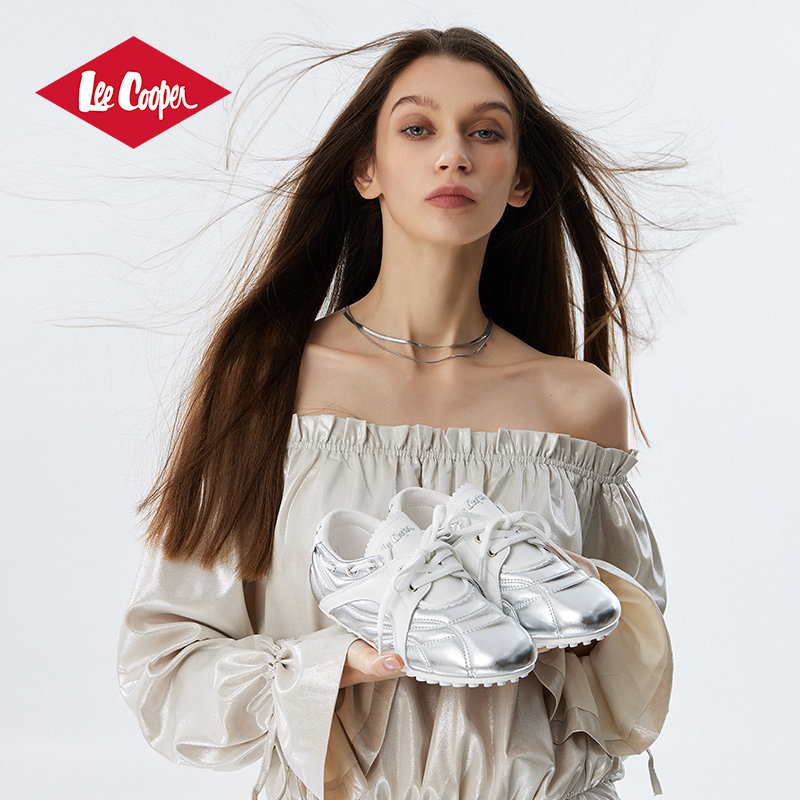 Lee Cooper2026春季新款芭蕾德训鞋女银色内增高阿甘鞋运动休闲鞋