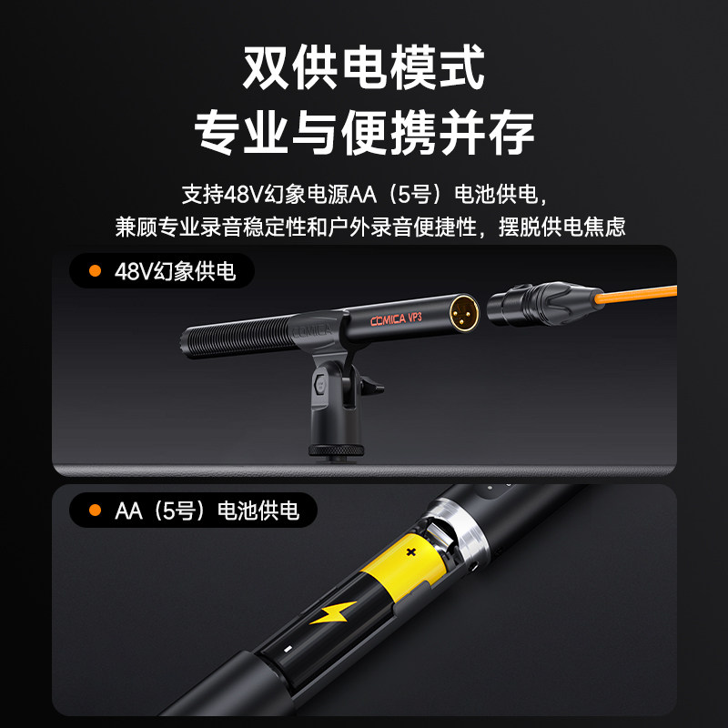 科唛COMICA VP3枪式电容麦克风指向性专业采访单反相机顶录收音麦