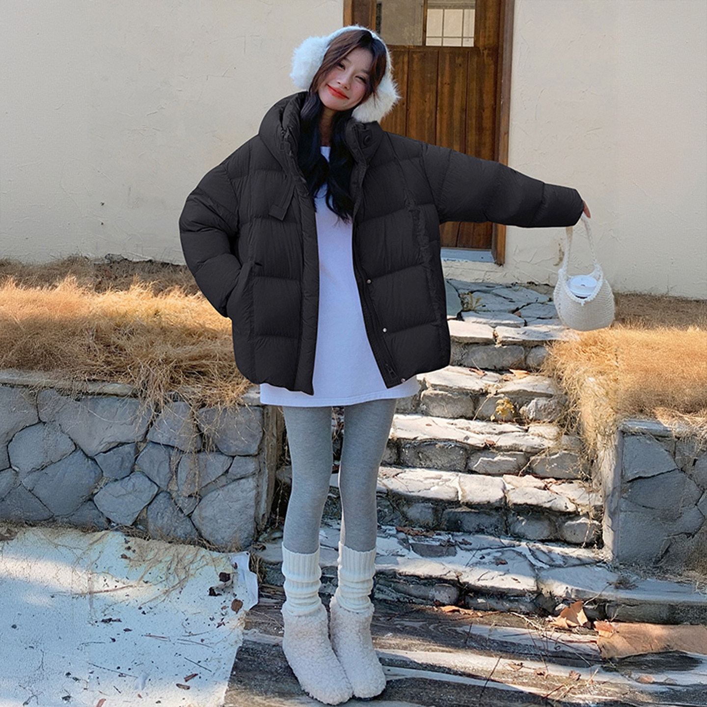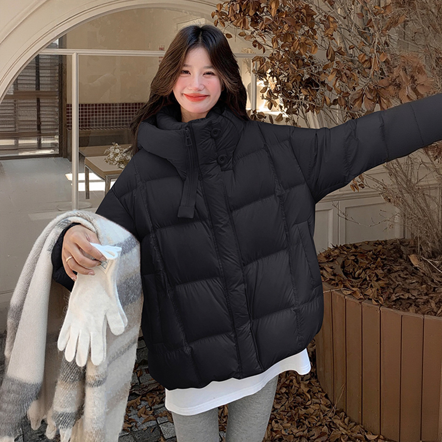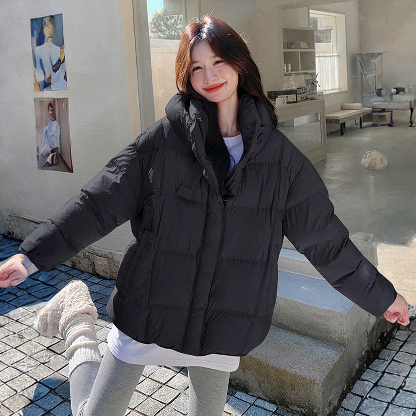 大码胖mm黑色高级感气质保暖厚外套女2025冬季韩系超好看羽绒棉服