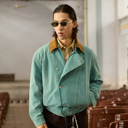 SOARIN美式复古拉链牛仔夹克男 高级感痞帅休闲宽松飞行员外套