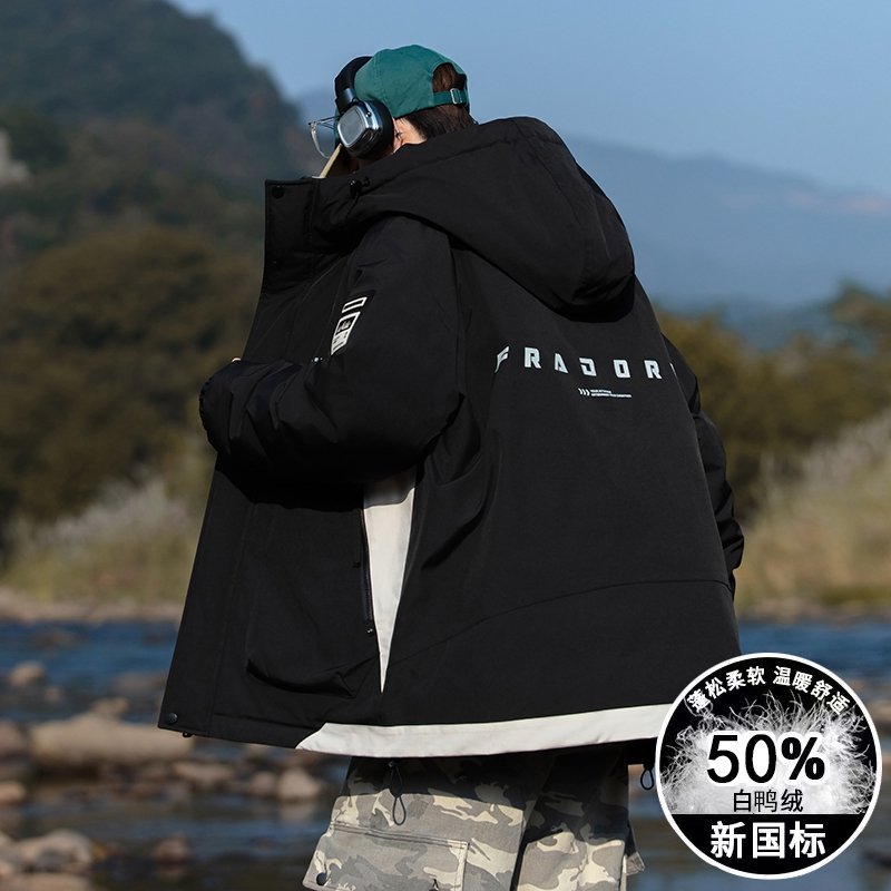 2025冬季青少年连帽羽绒服男款潮流百搭学生宽松加厚保暖外套以純
