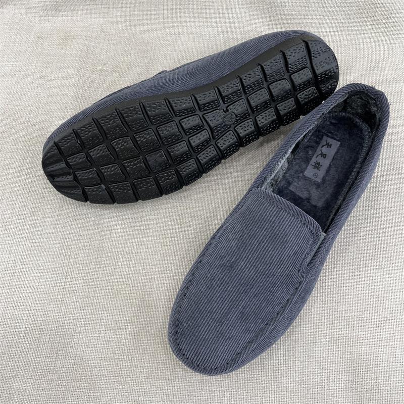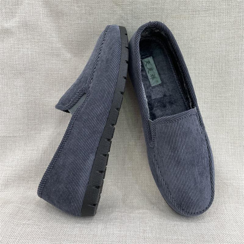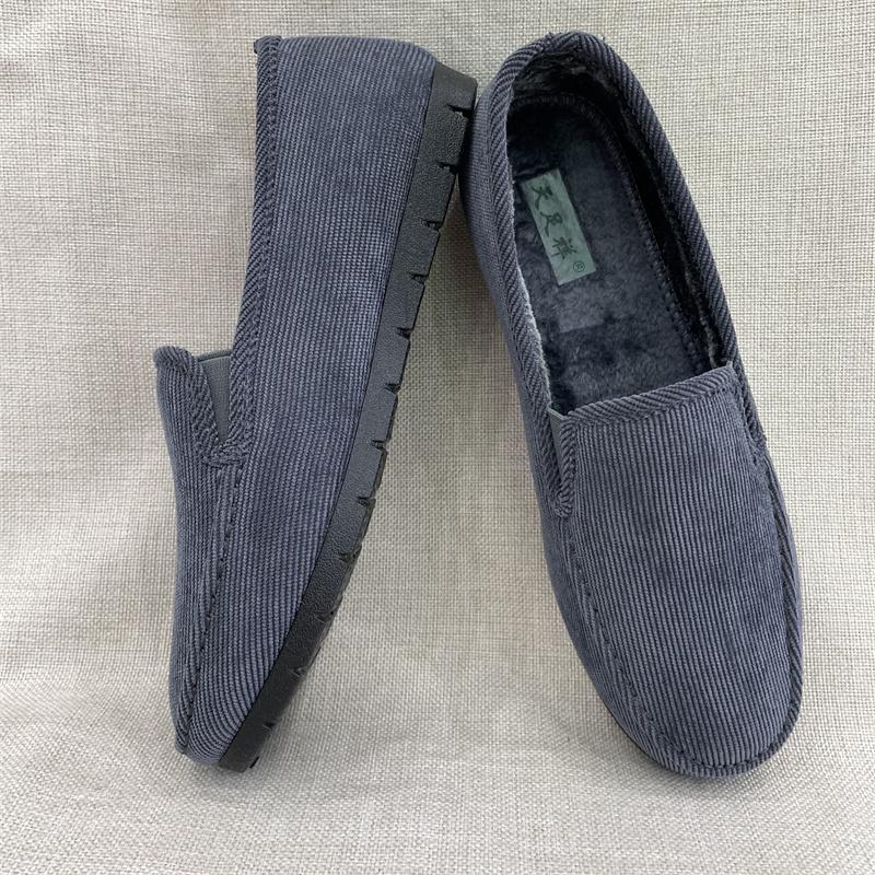 老北京冬季加绒加厚保暖低帮休闲套脚一脚蹬男士黑灰灯芯绒男布鞋