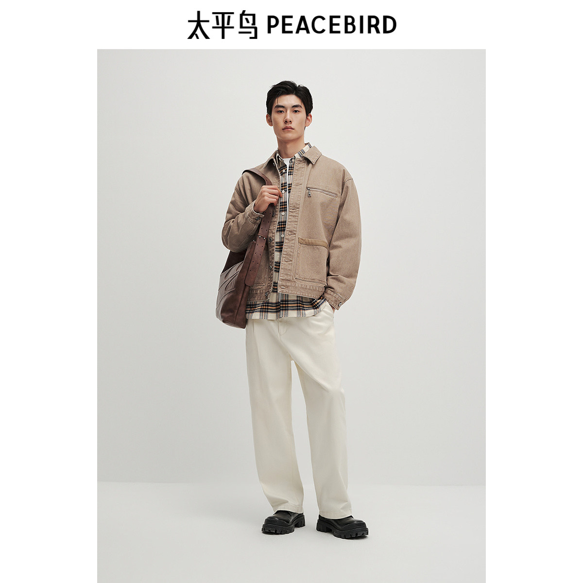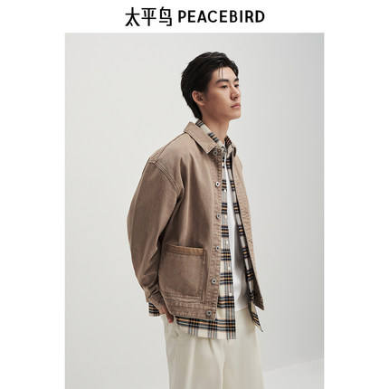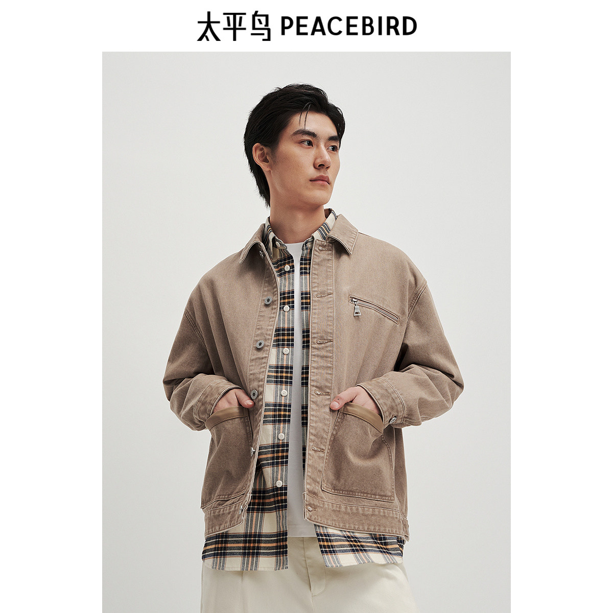 太平鸟男装 底特律牛仔夹克青年水洗浅色工装茄克潮流休闲外套