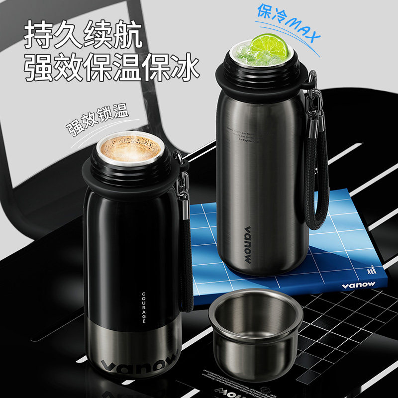 Vanow保温杯吸管男生2025新款高端大容量陶瓷内胆带盖水杯子礼物