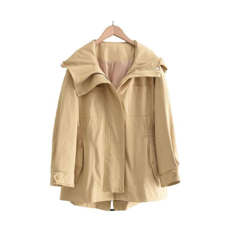 朗!挺括有型!2024春季新款时尚宽松连帽收腰显瘦小个子风衣外套
