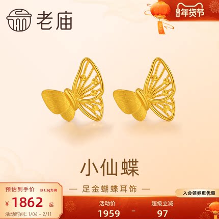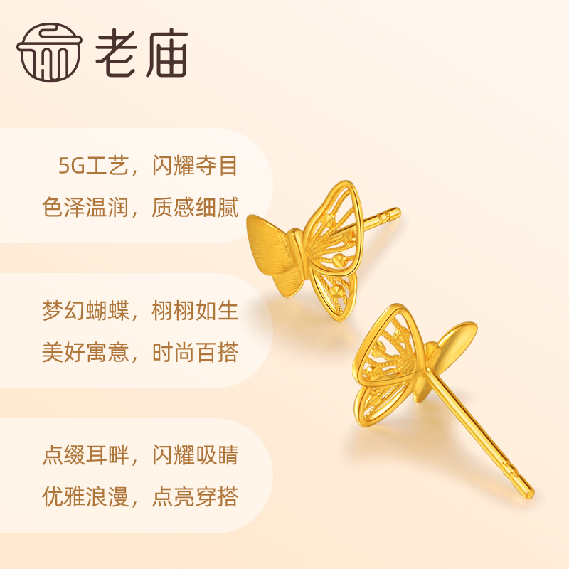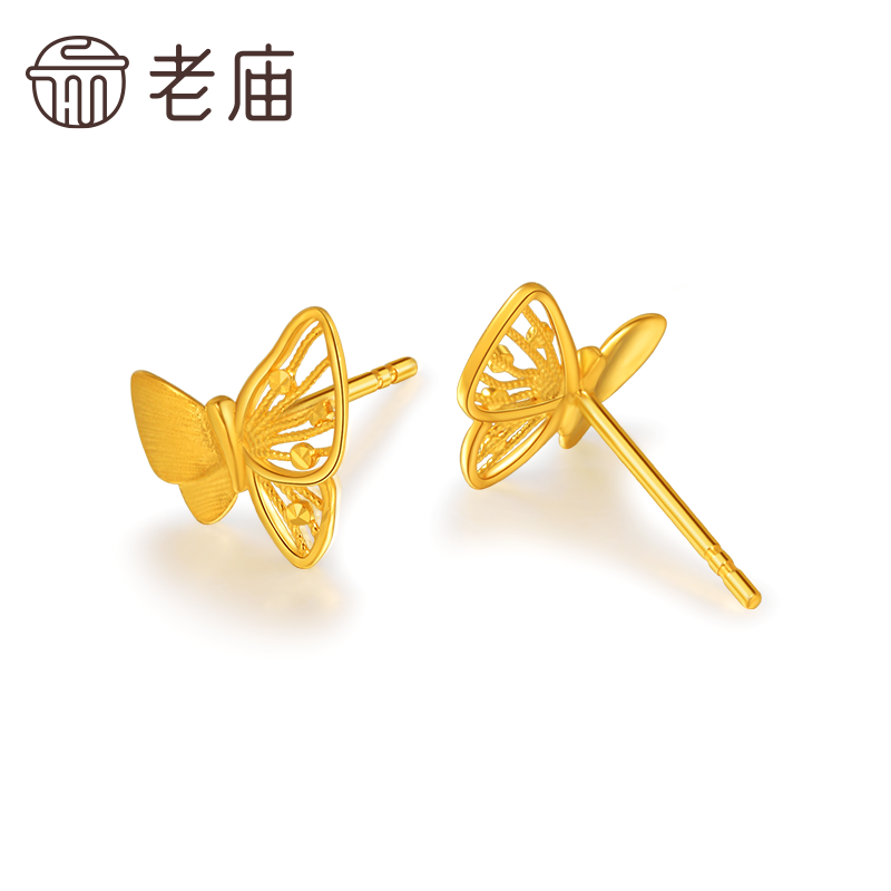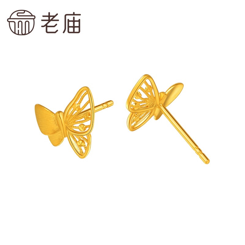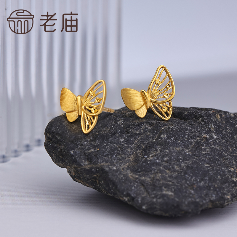 预售老庙黄金足金蝴蝶耳钉5G工艺栩栩如生福蝶时尚悦己穿搭亮眼官
