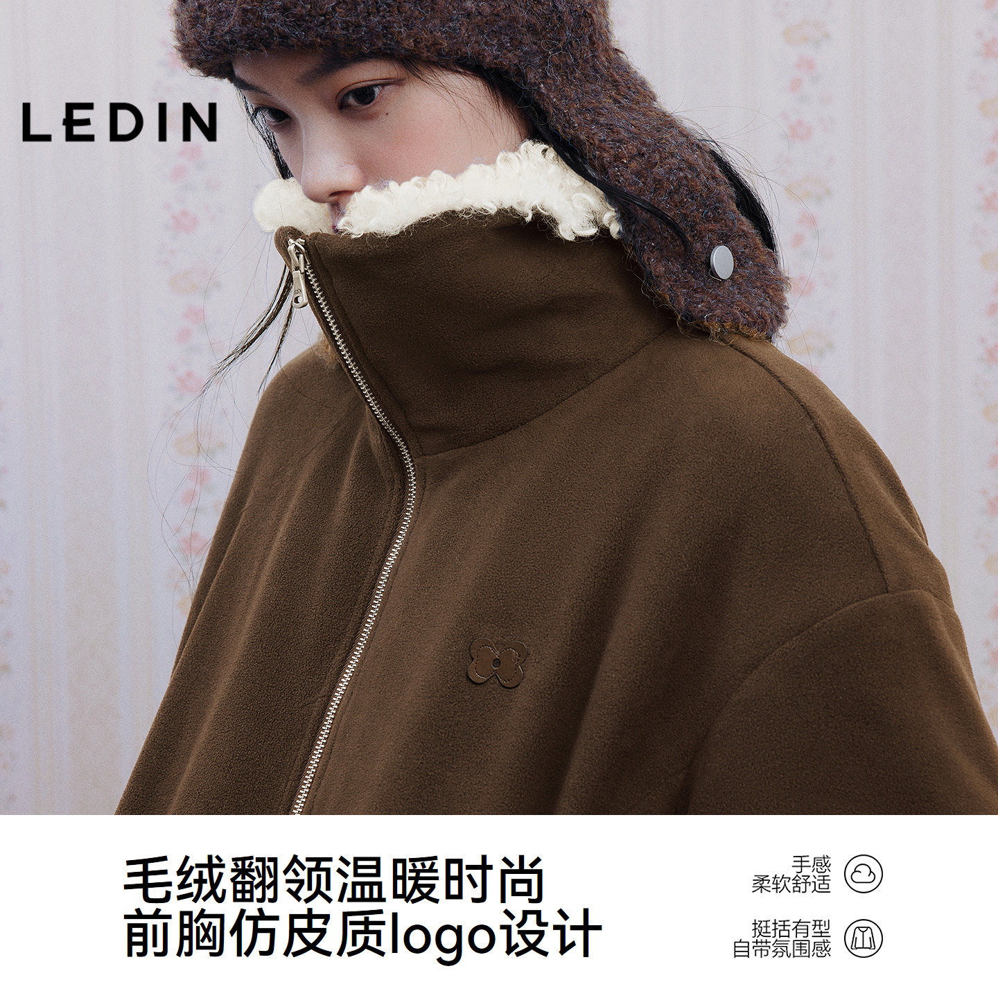 乐町摇粒绒外套女25年冬新款加厚翻领毛领简约巴恩风休闲拉链夹克