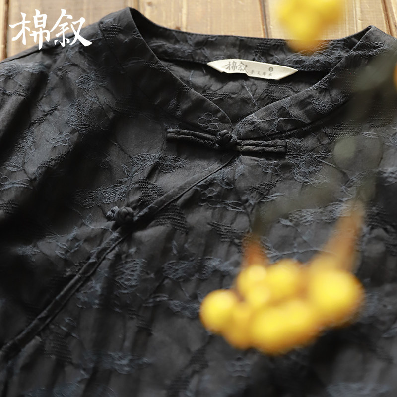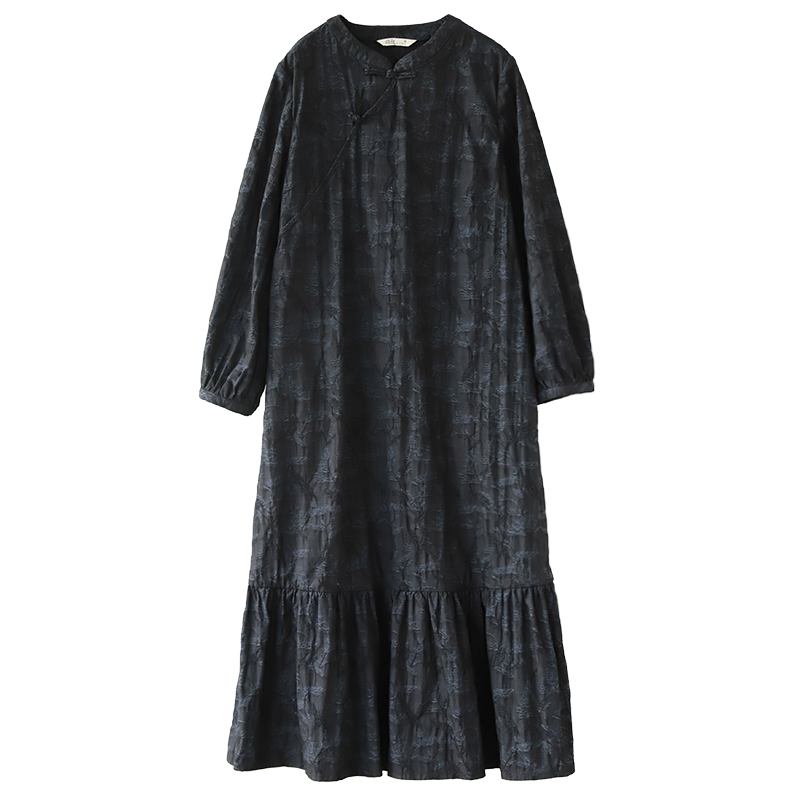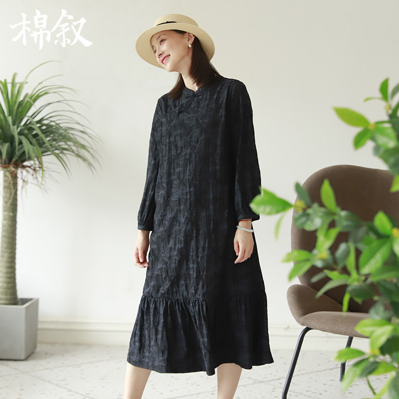 棉叙原创国风改良宽松旗袍裙长袖中式提花袍子女鱼尾连衣裙23219