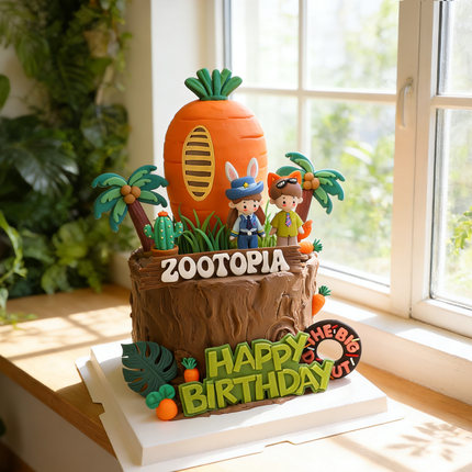 卡通蛋糕装饰兔子警官女孩狐狸男孩玩偶摆件儿童生日动物城插牌
