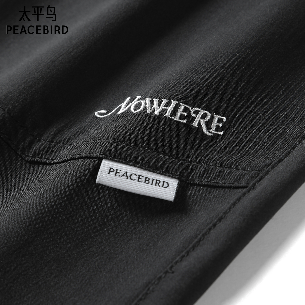 太平鸟男装 时尚黑色休闲裤夏季宽松透气潮流直筒长裤