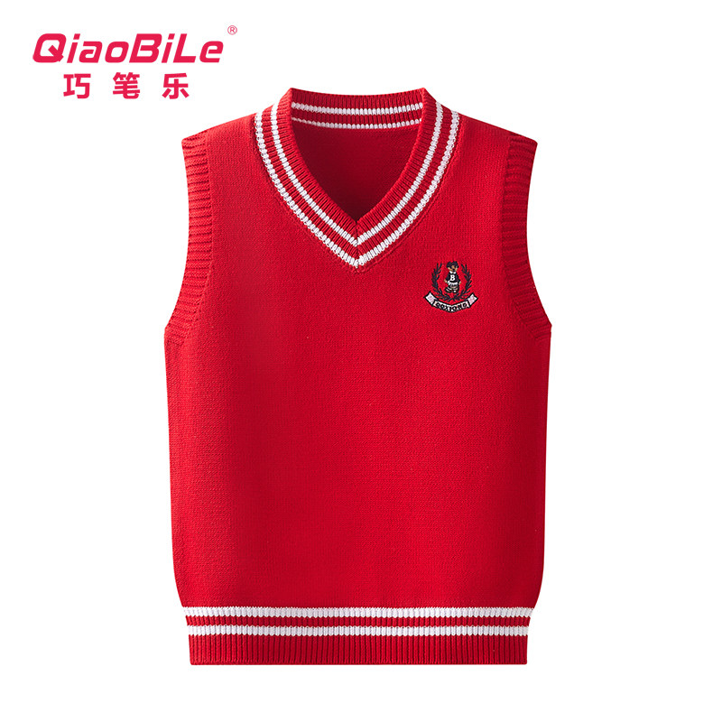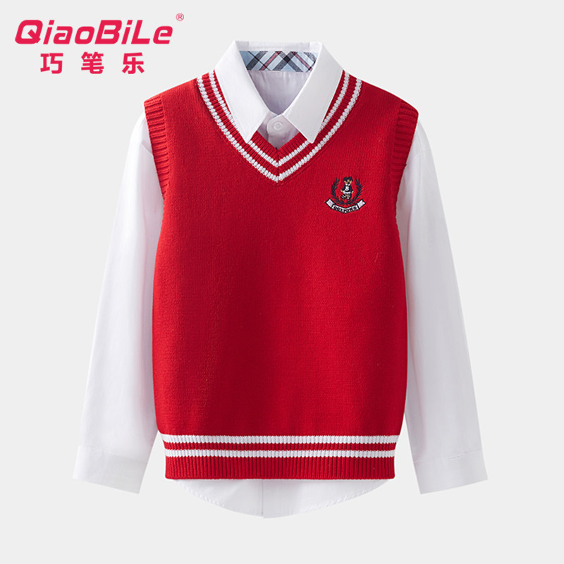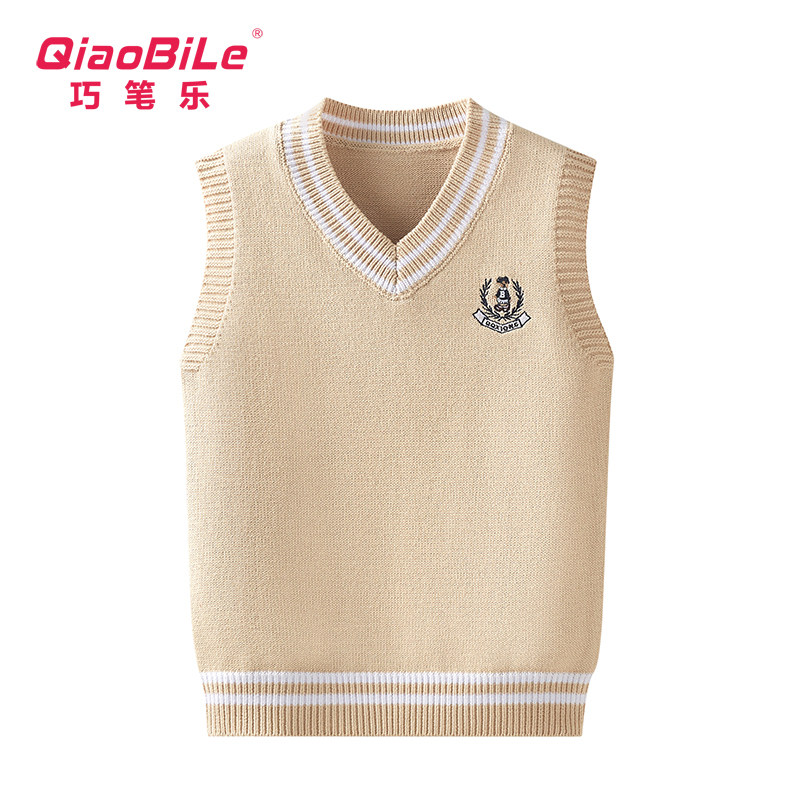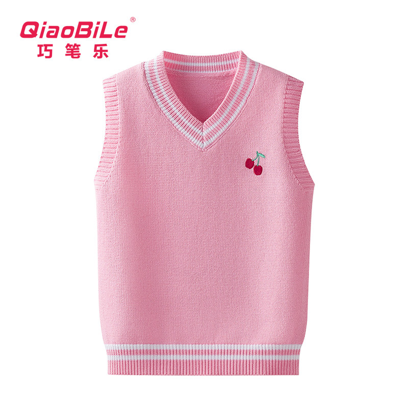 女童全棉背心薄2025春秋新款中大儿童加绒厚马甲V领套头坎肩毛衣