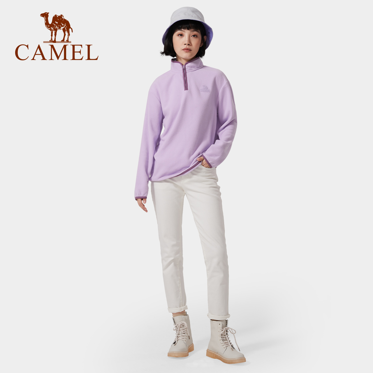 骆驼瑜伽服女时尚套头衫加厚运动服上衣秋冬抓绒衣服长袖保暖外套