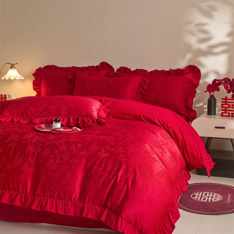 高档提花结婚四件套新婚庆红色被套床单简约喜被婚房陪嫁床上用品