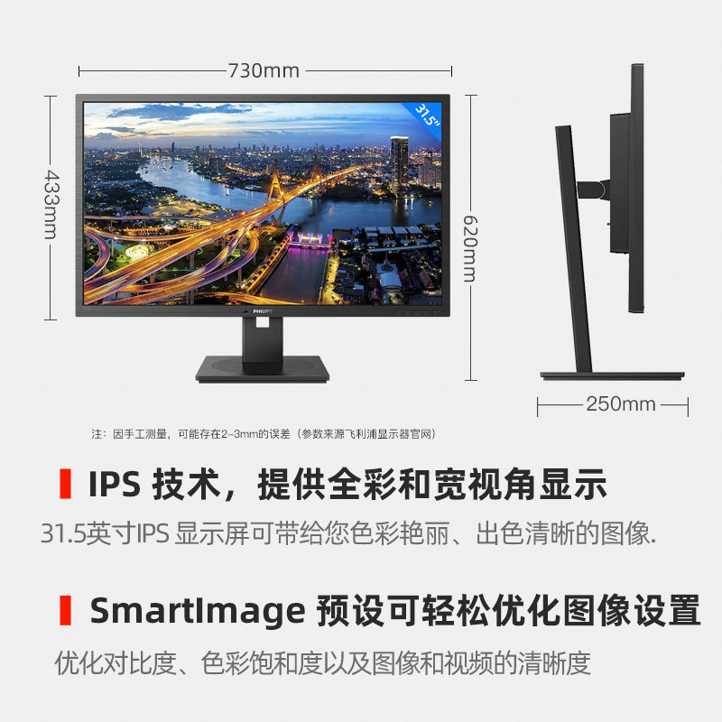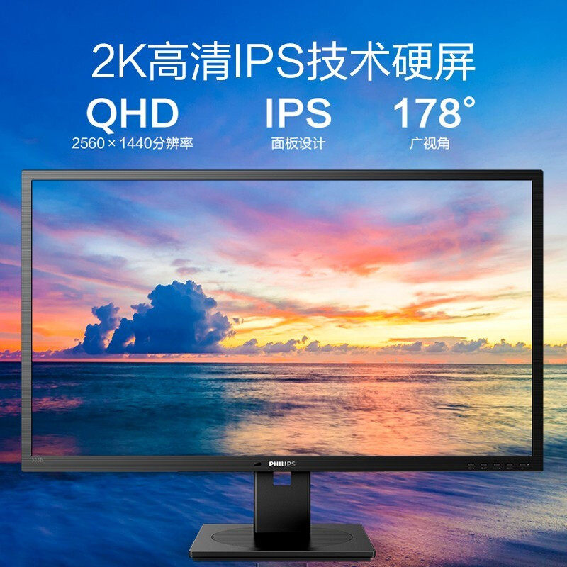 飞利浦32英寸2K显示器IPS广色域电脑高清27显示屏作图设计325B1LN