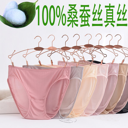 简约性感 透气100%桑蚕丝内裤中低腰女针织真丝三角裤短裤 多色