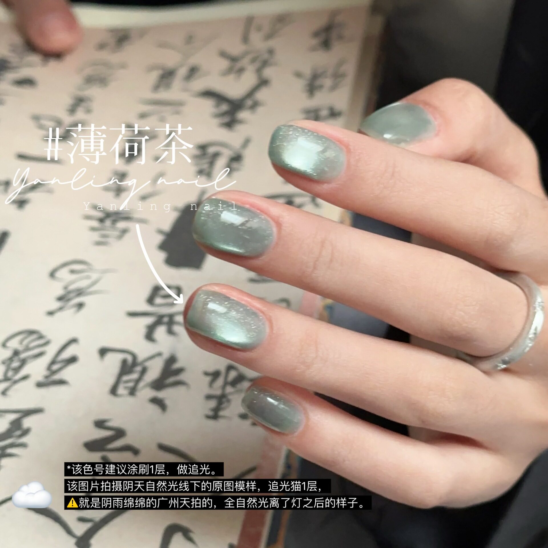 燕翎花草语录猫眼甲油胶一杯罗勒薄荷茶小野黛丽半城繁花晶石美甲