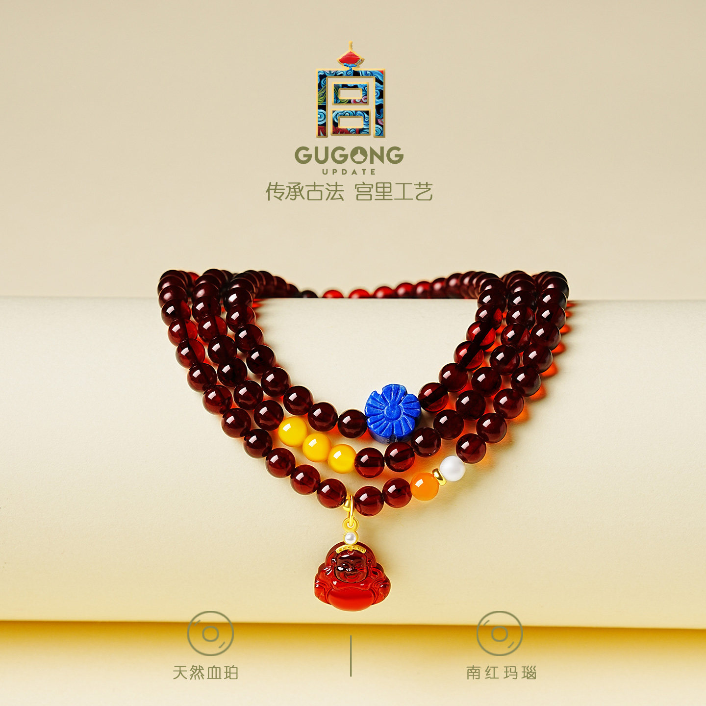 宫里上新血珀手串女款天然琥珀红色手链叠戴生日本命年礼物送妈妈