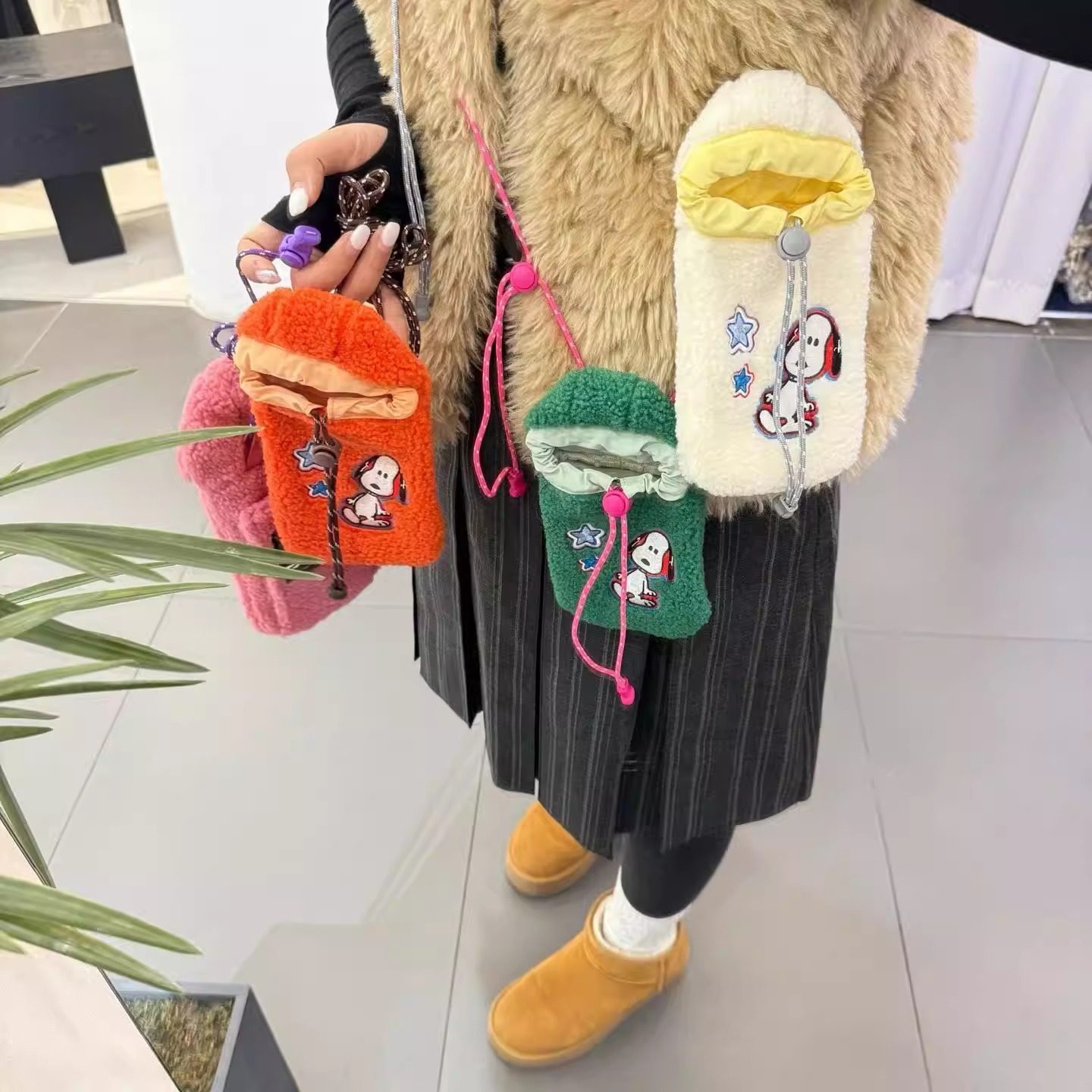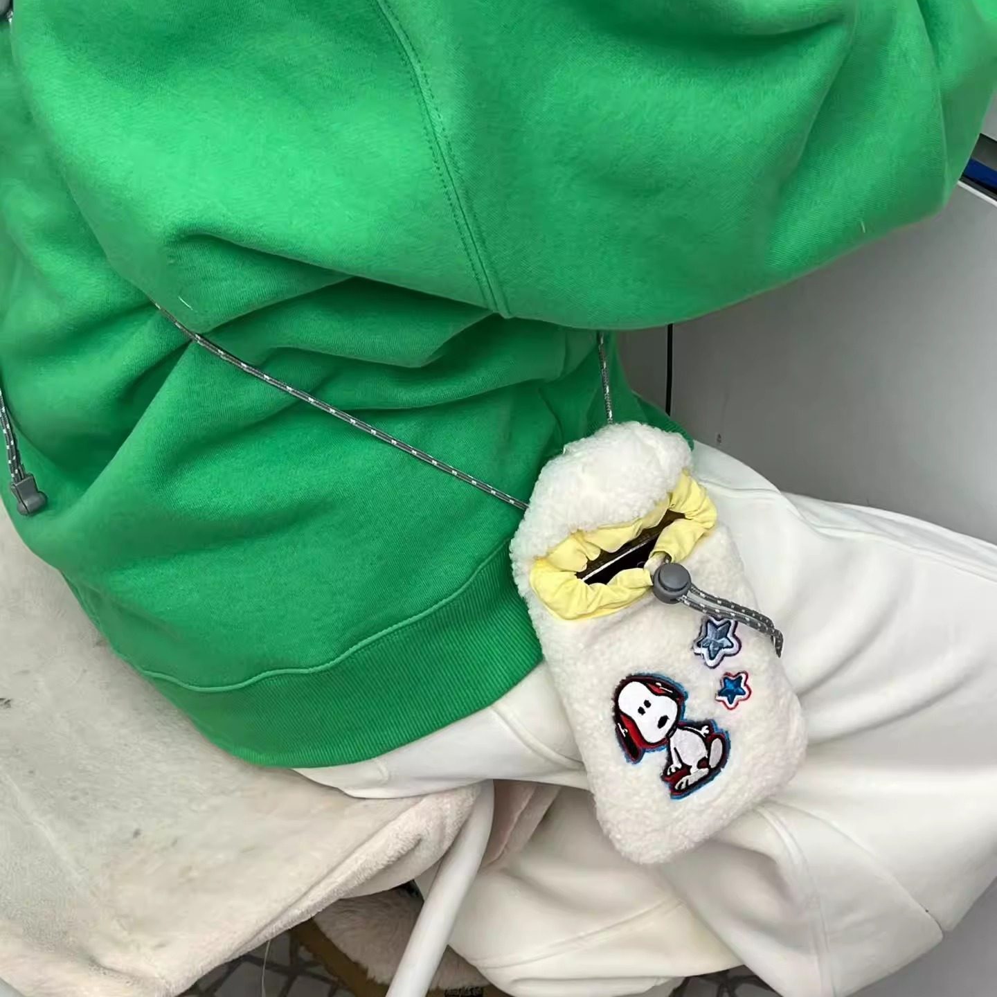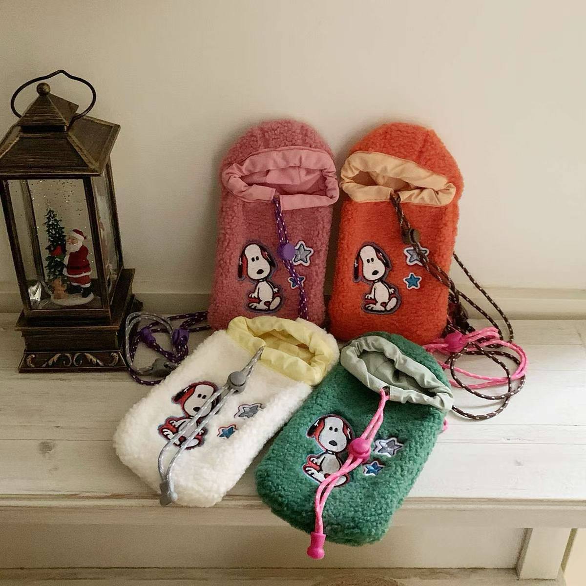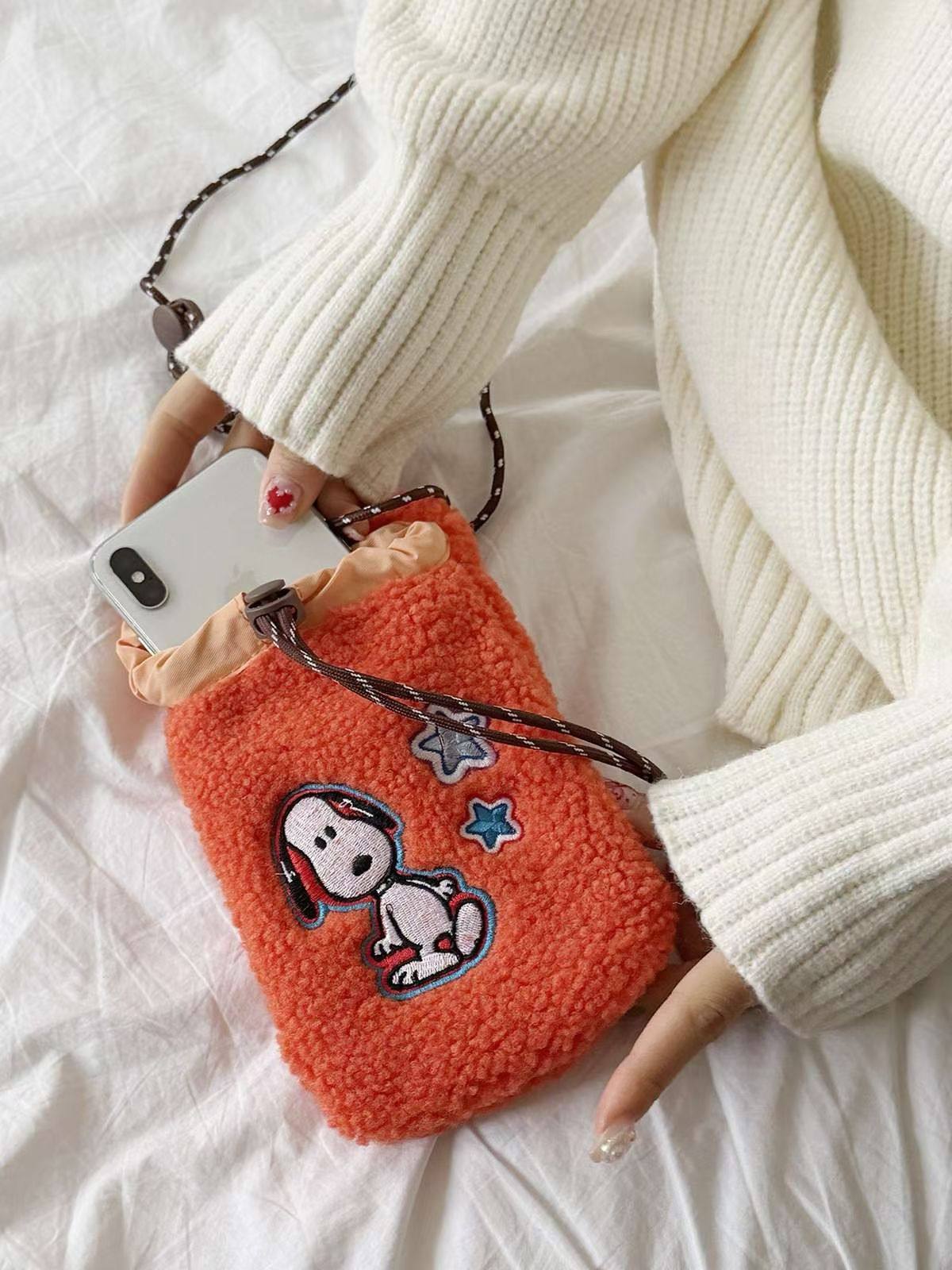 摇粒绒史努比手机包韩国东大门Lejunevk新款抽绳长肩带可调斜挎包