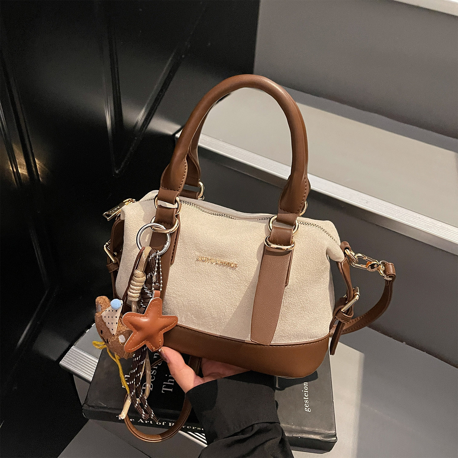 艾米兔女包2026新款日常通勤时尚复古潮流洋气拼色设计手提斜挎包