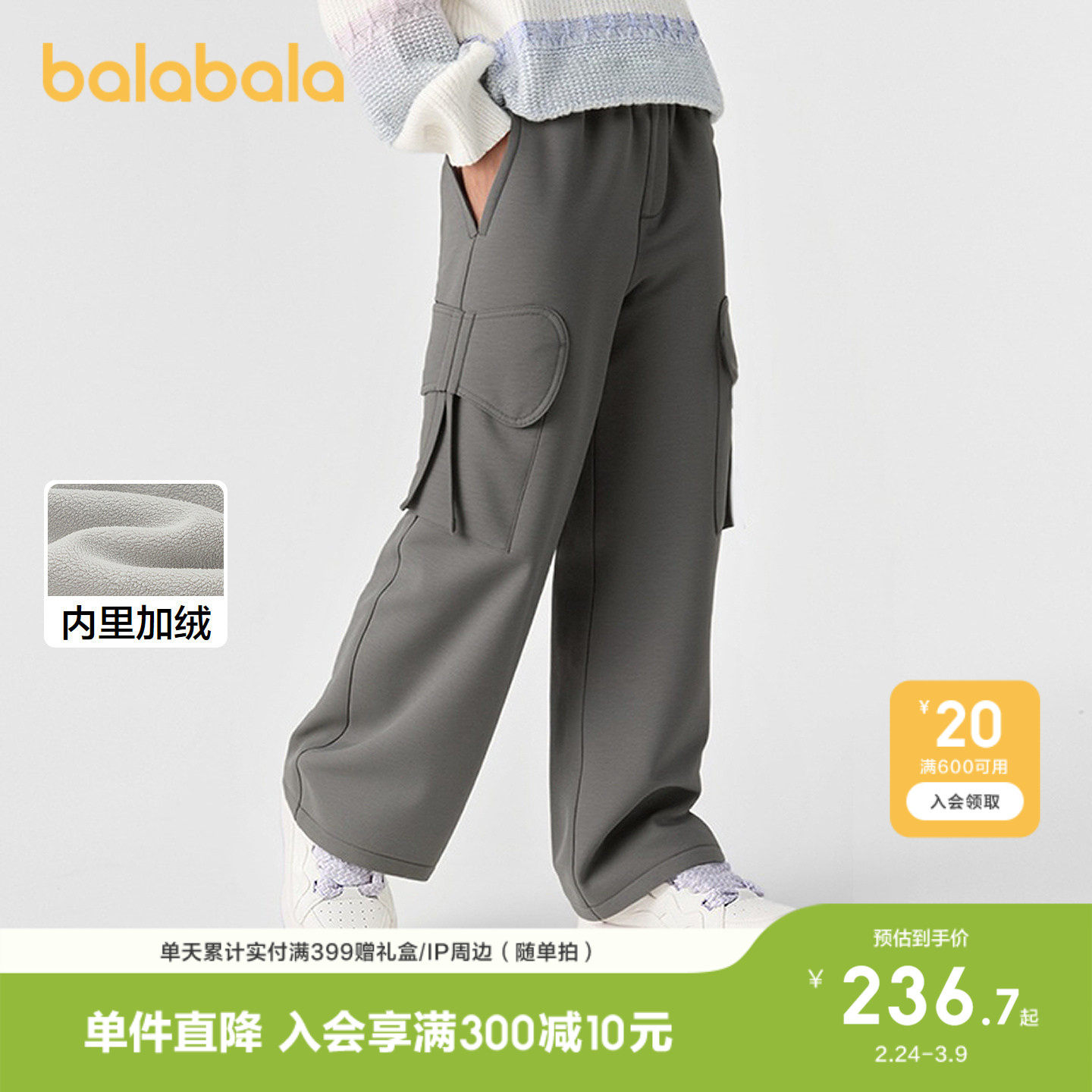 【商场同款】巴拉巴拉童装儿童加绒裤子女童休闲长裤2026冬装百搭