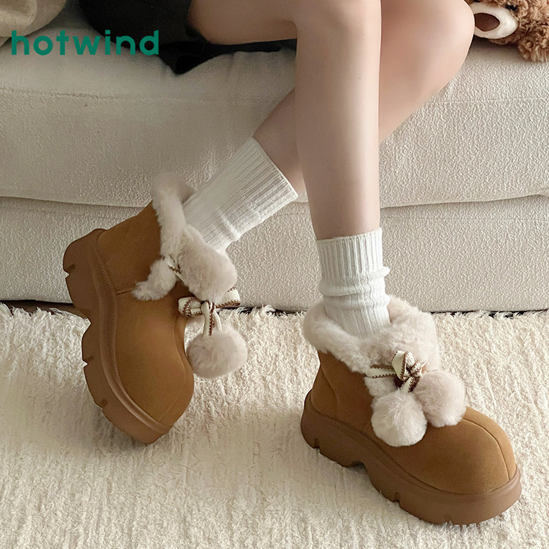 热风卡皮巴拉雪地靴女款2025年冬季新款百搭休闲厚底棉鞋毛毛鞋